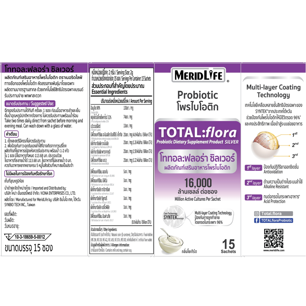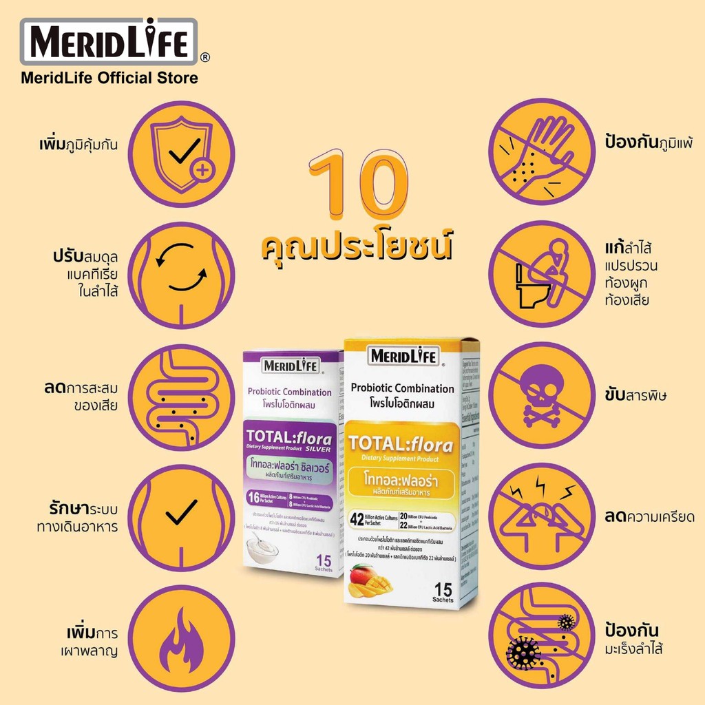 "MeridLife" โททอล:ฟลอร่า ซิลเวอร์ โพรไบโอติก Total:flora Probiotic ปรับสมดุลขับถ่าย