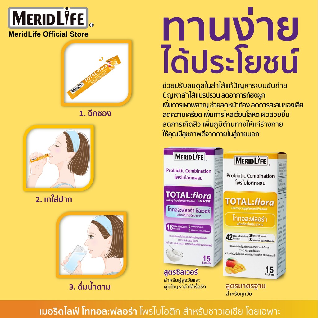 "MeridLife" โททอล:ฟลอร่า โพรไบโอติก Total:flora Probiotic ปรับสมดุลลำไส้ ขับถ่าย แก้ท้องอืด ท้องเสีย