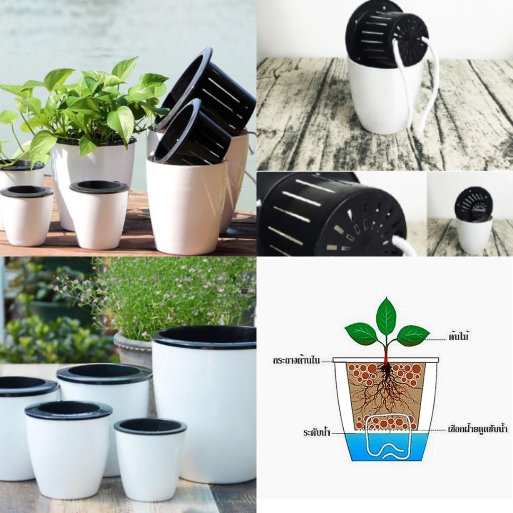 กระถางต้นไม้มี 2 ชิ้นและเชือกดูดน้ำ สีขาว ขนาด S