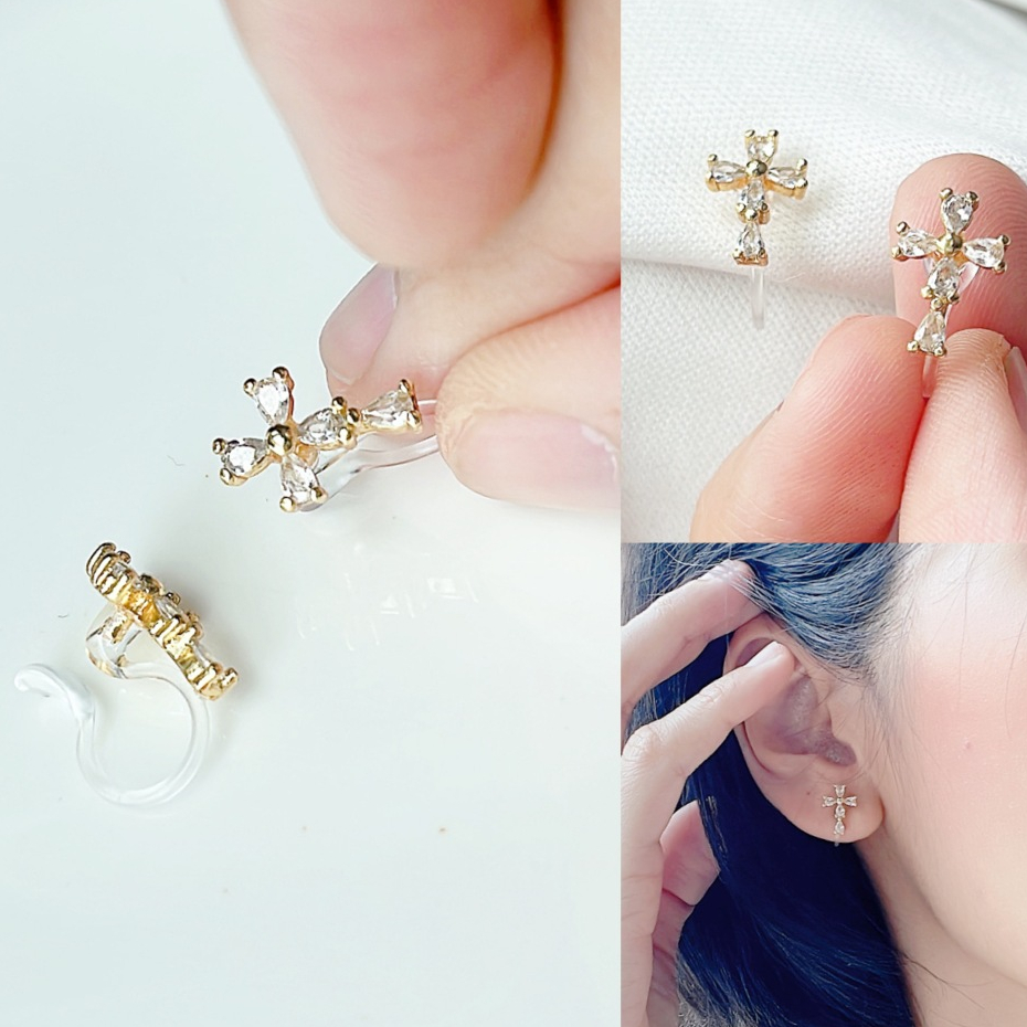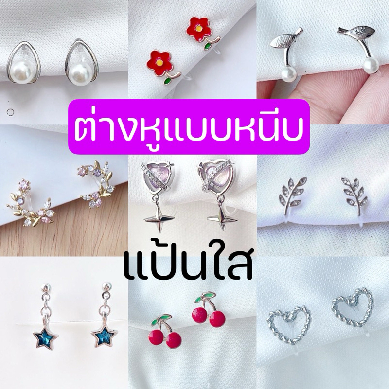 ต่างหูหนีบ set A แป้นใส ติดหู ขนาดเล็ก ใส่สบาย ไม่เจ็บ สำหรับคนไม่เจาะหู เจาะแล้วแพ้