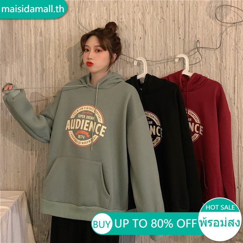🔥ส่งไวจากไทย🔥maisidamall ราคาถูกที่สุด สินค้าใหม่ เสื้อกันหนาวหมวก รูปแบบตัวอักษร เสื้อกันหนาว 3 สี พลัสไซซ์:สีเขียวอ่อน (44-75 กก.) ไซซ์ XXL