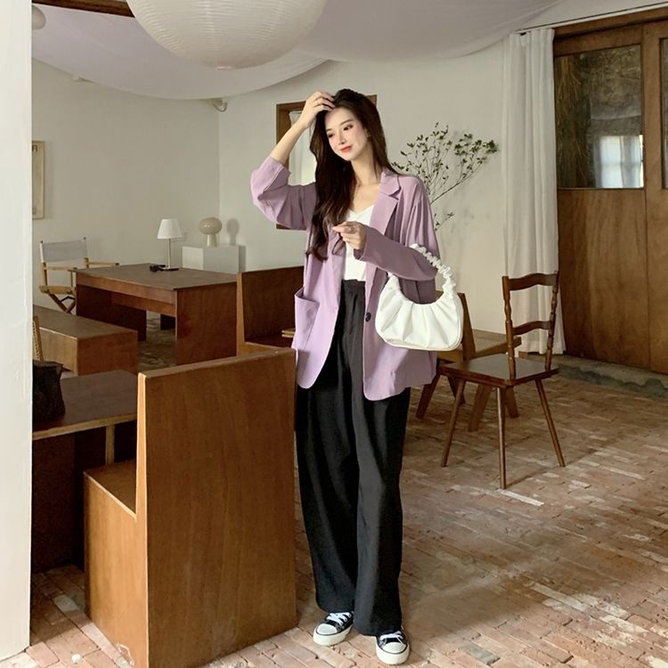 🔥ส่งไวจากไทย🔥 MSD แขนยาว เสื้อคลุมเบลเซอร์ แขนยาว สไตล์เกาหลี สำหรับผู้หญิง มีกระดุมและกระเป๋าหน้า 2 สี