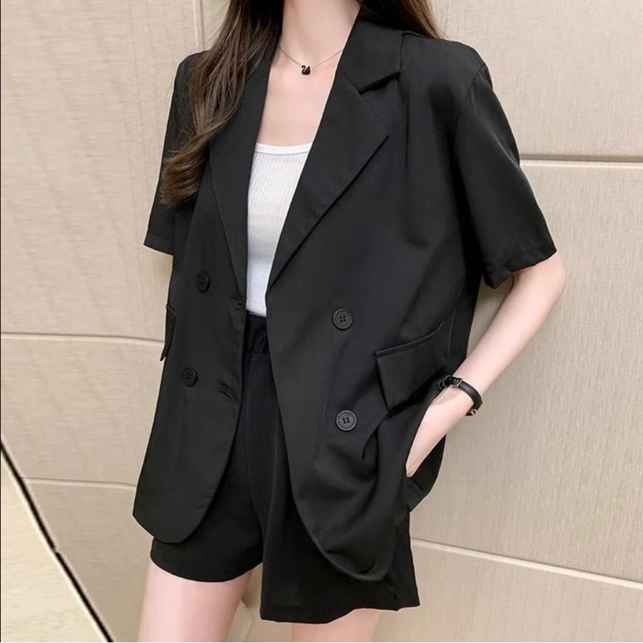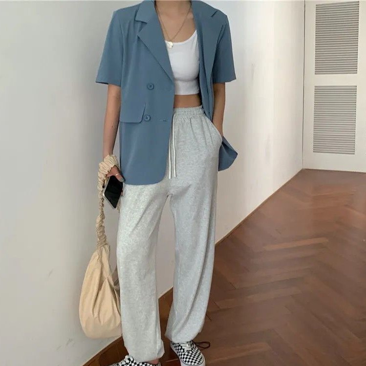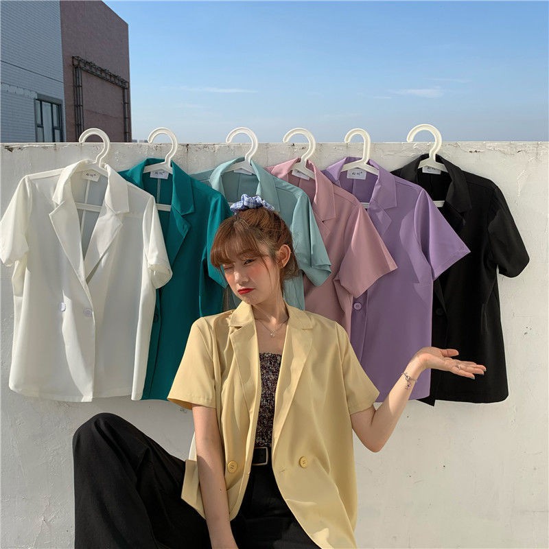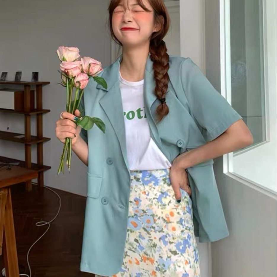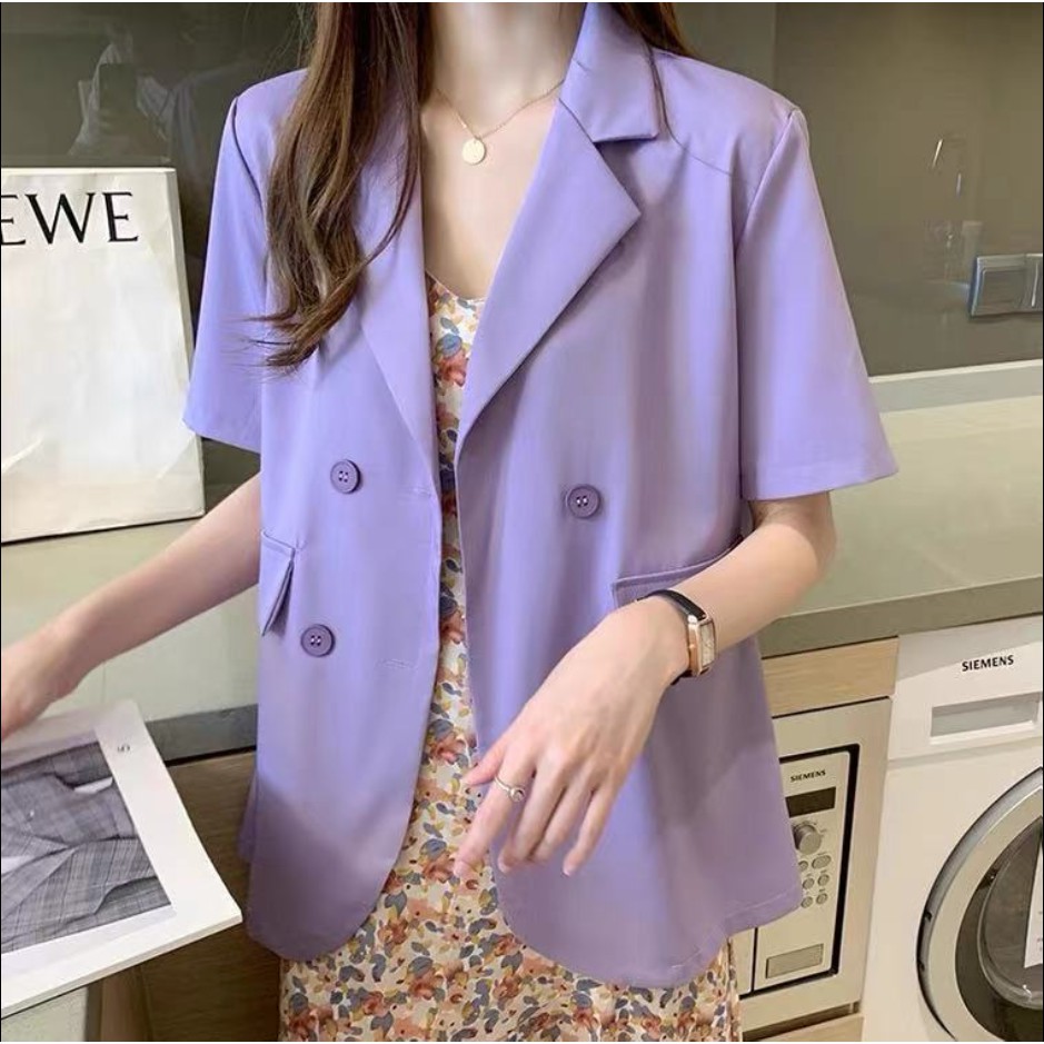 🔥ส่งไวจากไทย🔥 MSD พร้อมส่ง เสื้อสูทแจ็กเก็ต เบลเซอร์ แขนสั้น ทรงหลวม 7 สี สีฟ้า สําหรับผู้หญิง