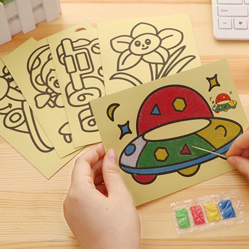 (P-112) 1บาท1แผ่นพร้อมสี🌈ทรายระบายสีการ์ตูน [มี 3 ขนาด] ✔️พร้อมส่ง ของเล่น วาดภาพ งานศิลปะ ทรายระบายสี เสริมทักษะ
