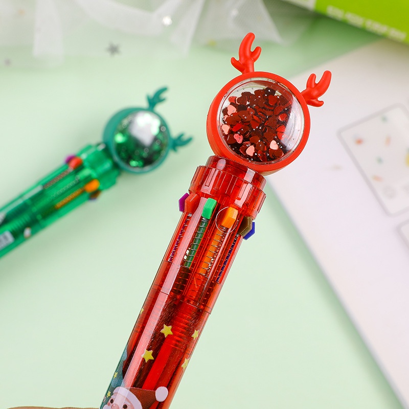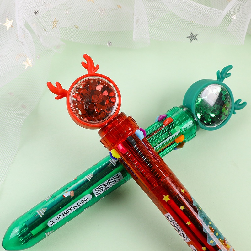 (P-140) ปากกาลูกลื่น 10 สีในด้าม ปากกาคริสต์มาสเขากวางเรนเดียร์ Christmas สีแดง สีเขียว ใช้จดบันทึกทำรายงาน ส่งแบบสุ่มสี