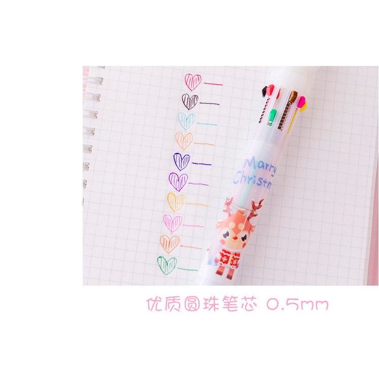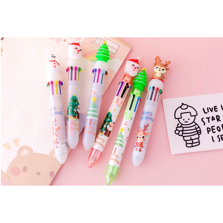 (P-139) ปากกาลูกลื่น 6 สีในด้าม 0.5mm ปากกาหัวตุ๊กตาคริสต์มาส Christmas ซานตาคลอส เรนเดียร์ สโนว์แมน ใช้จดบันทึก คละลาย