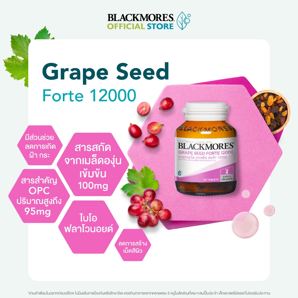Blackmores Grape Seed Forte 12000 (30 tabs) แบลคมอร์ส เกรพสีด ฟอร์ท 12000 มก. (30 เม็ด)