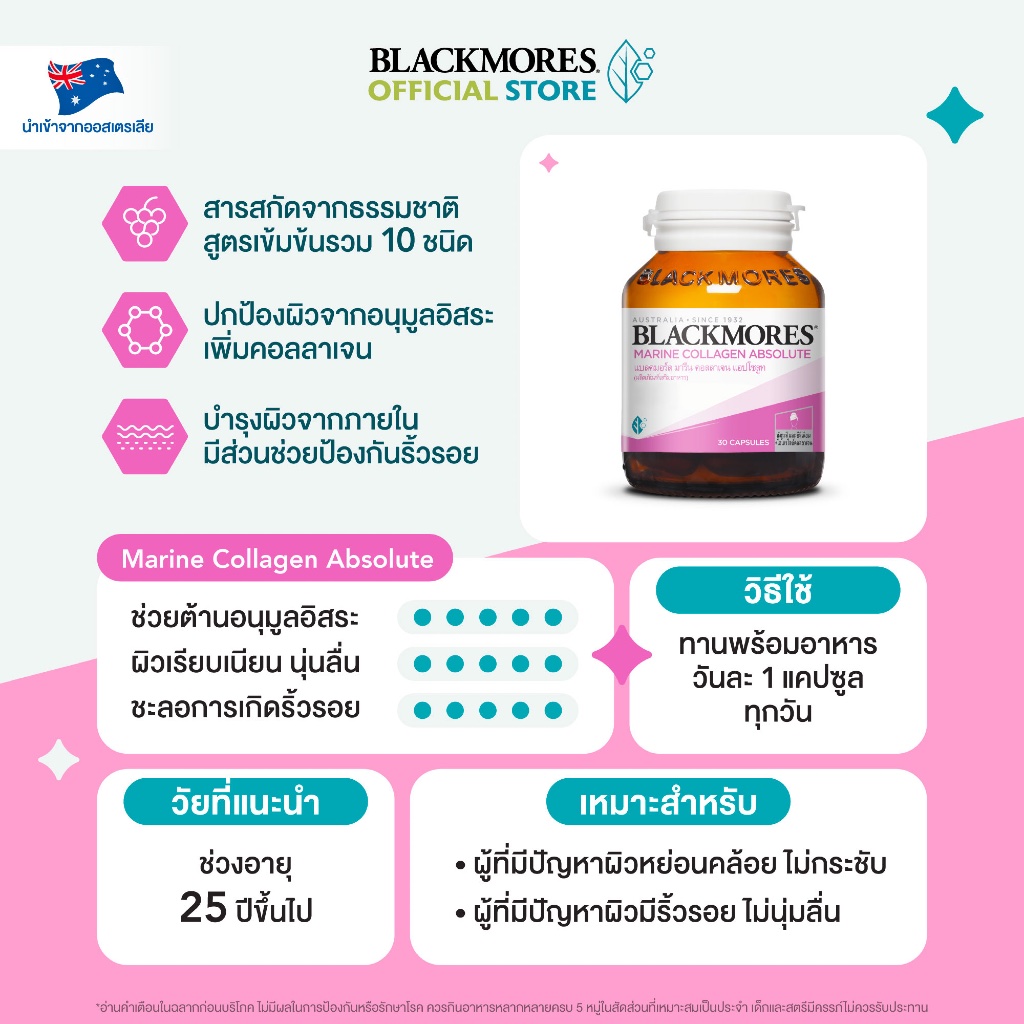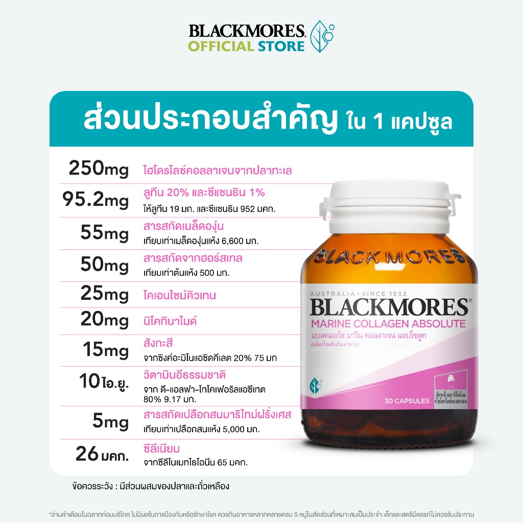 Blackmores Marine Collagen Absolute (30 caps) แบลคมอร์ส มารีน คอลลาเจน แอปโซลูท (30 แคปซูล)