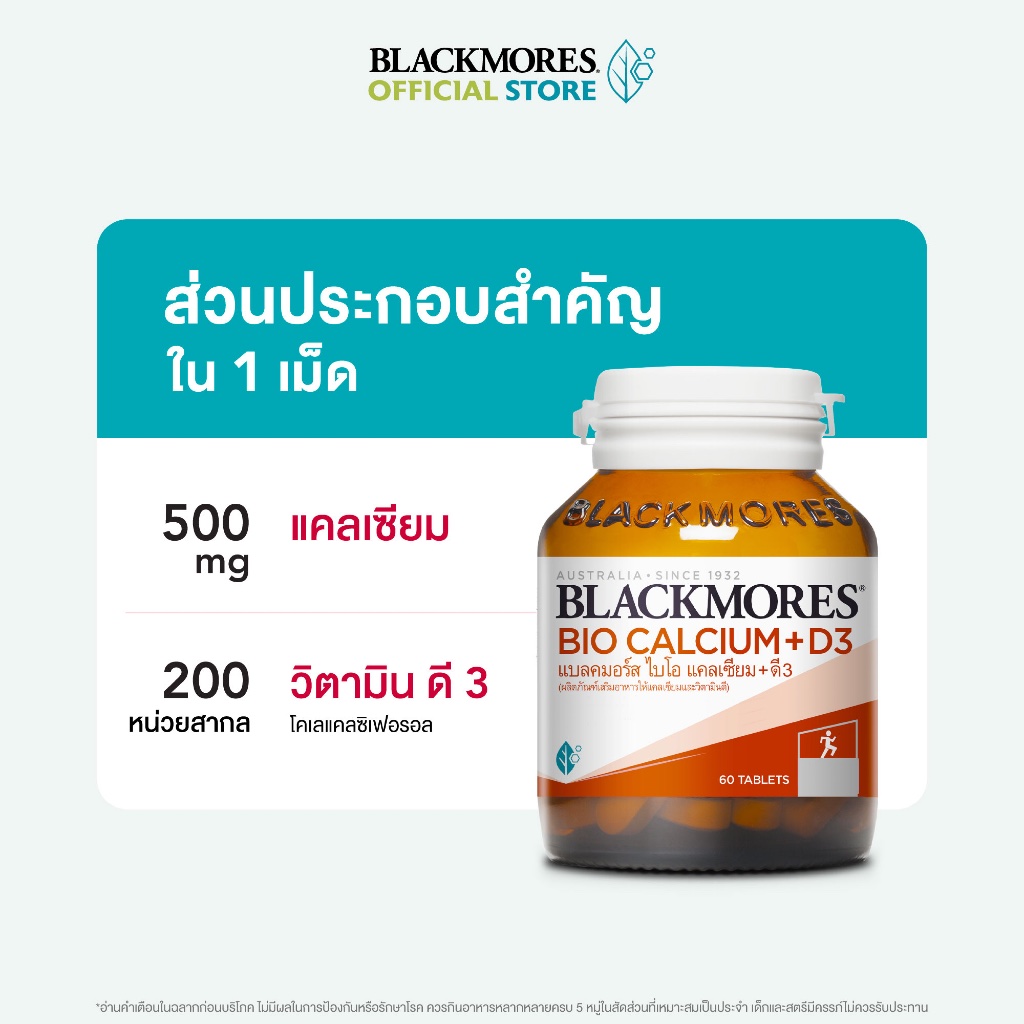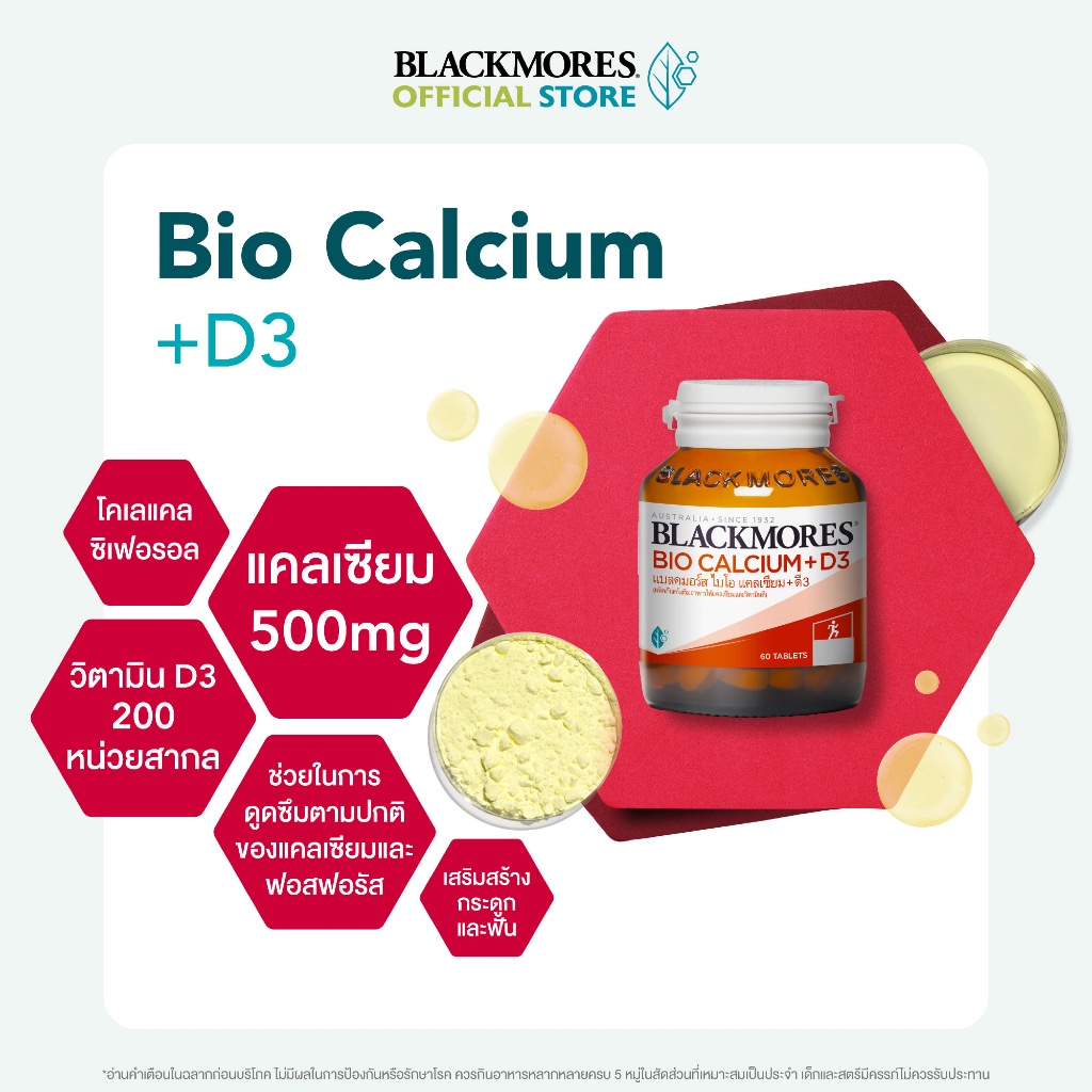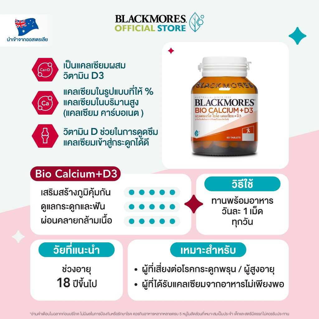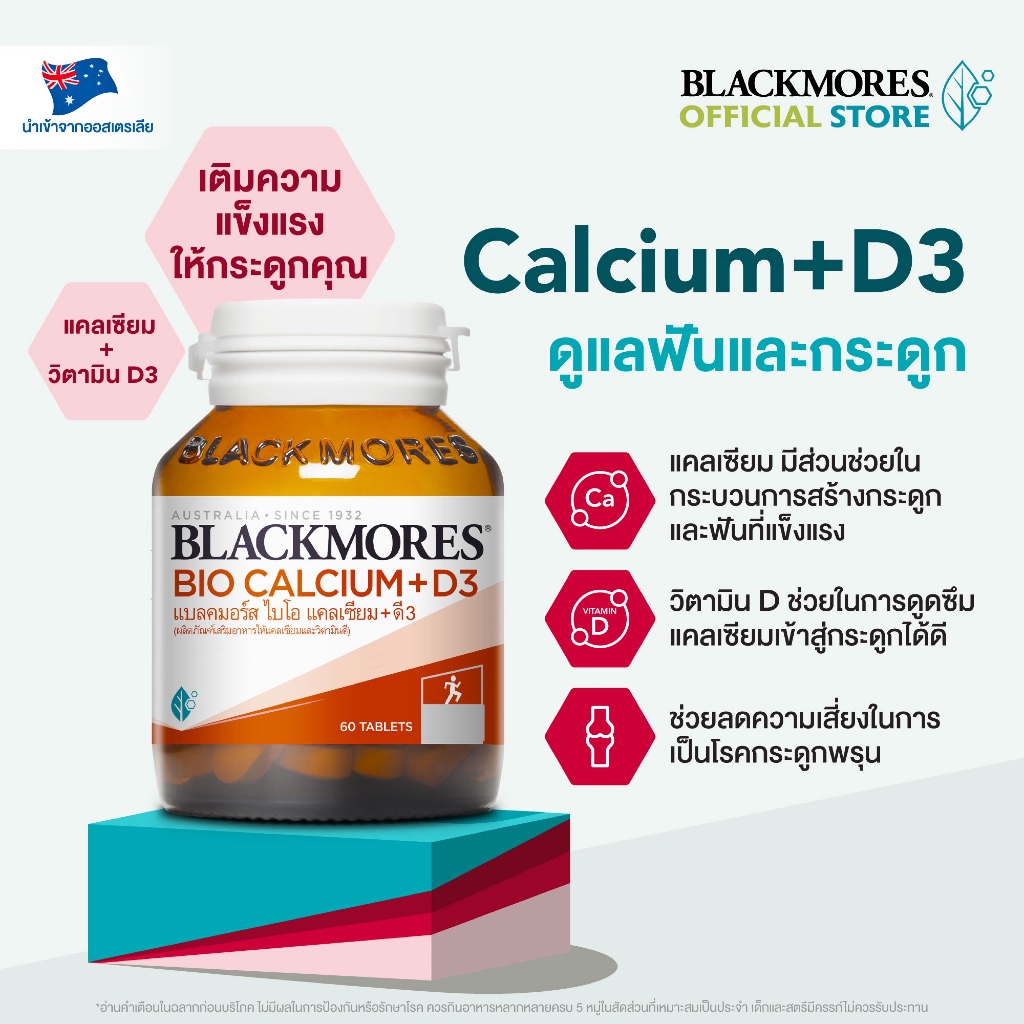 Blackmores Bio Calcium + D3 (60 tabs) แบลคมอร์ส ไบโอ แคลเซียม + ดี3 (60 เม็ด)