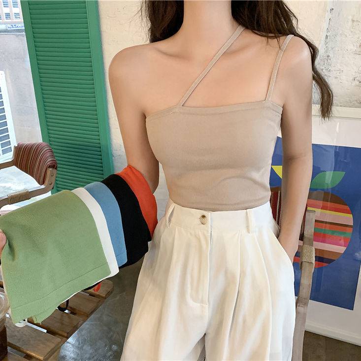 FF.shop-🍄สายเดี่ยวเฉียง มีสายคู่ใส่ได้หลายแบบ ผ้านิ่ม สไตล์วินเทจเซ็กซี่ 🍄 #H4