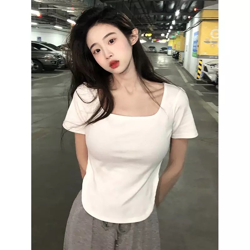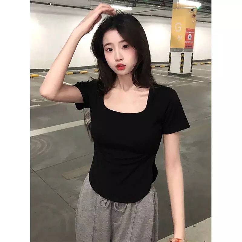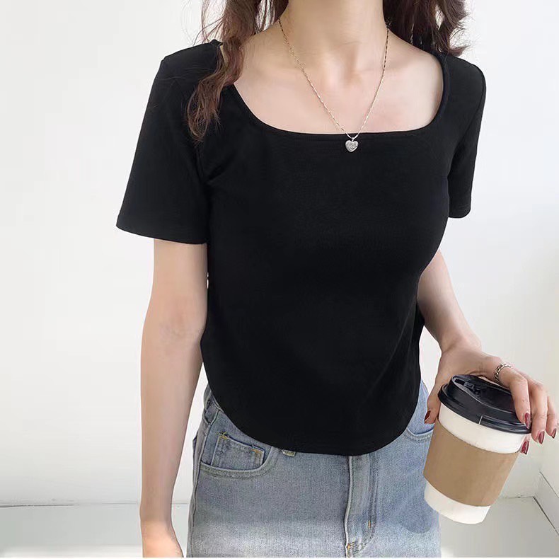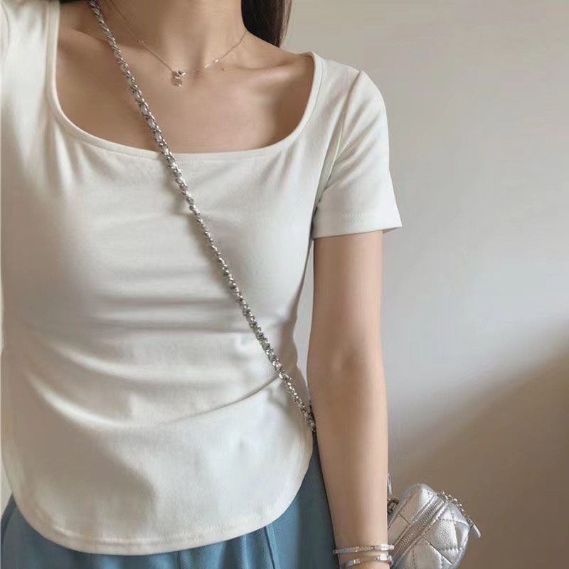 🌷เสื้อรัดรูป คอกลม🌷 แต่งชายโค้ง สีพื้น แวกข้างนิดๆโชว์เซ็กซี่ ผ้านิ่มผ้ายืด🌷 #A4