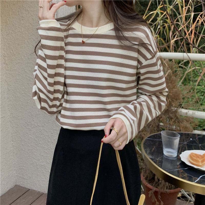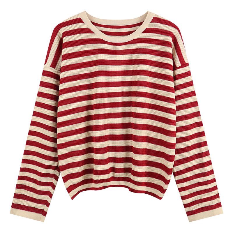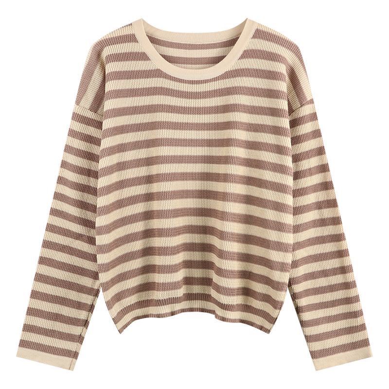 FF.shop- เสื้อแขนยาว ลายทาง คอกลม ไหมพรมผ้าถักหนาๆ กันหนาว สีสวยๆ #J7