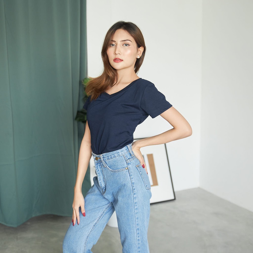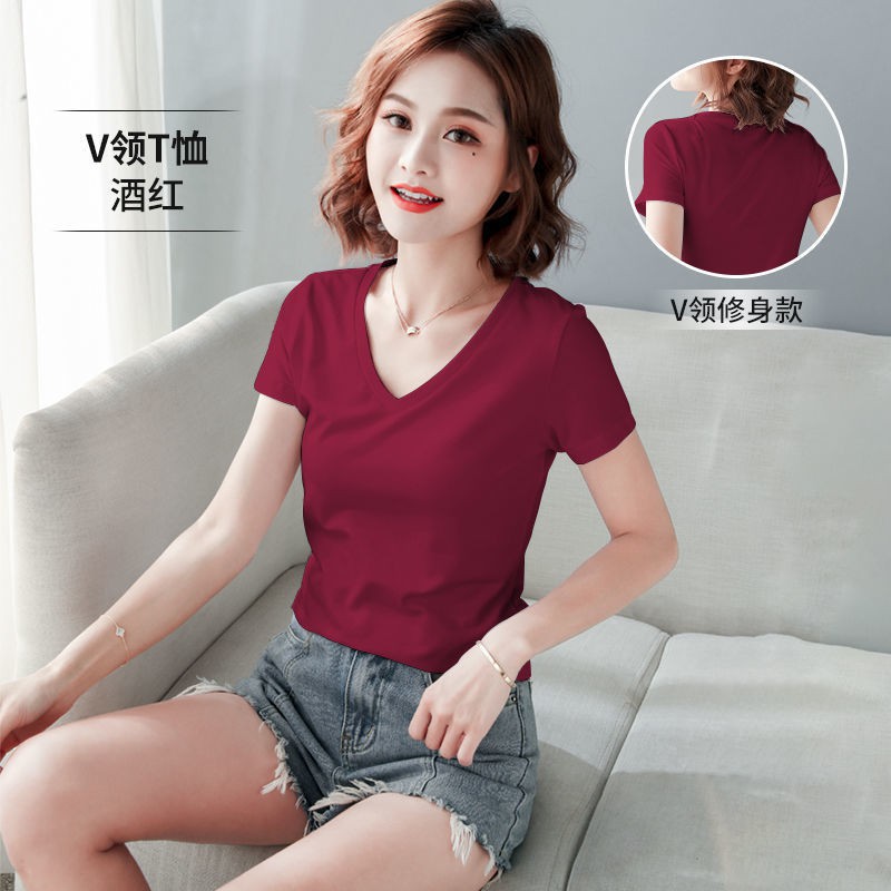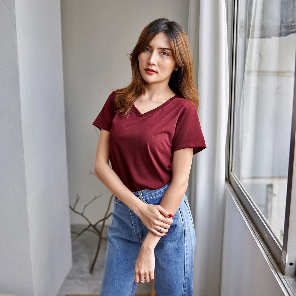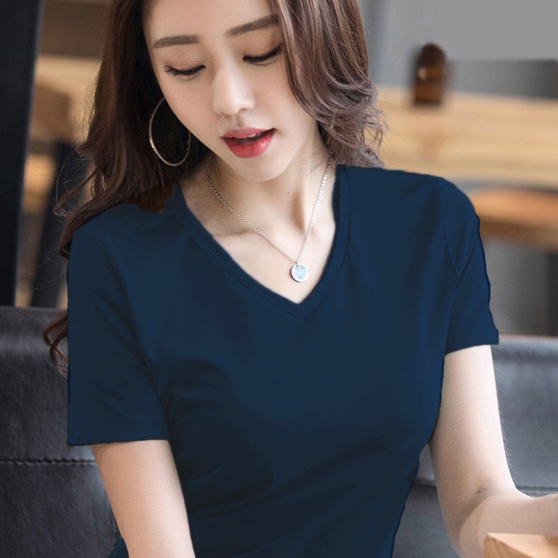 FF.shop-เสื้อยืดคอวีสีพื้นสไตล์เกาหลีใส่สบายผ้านิ่ม #635