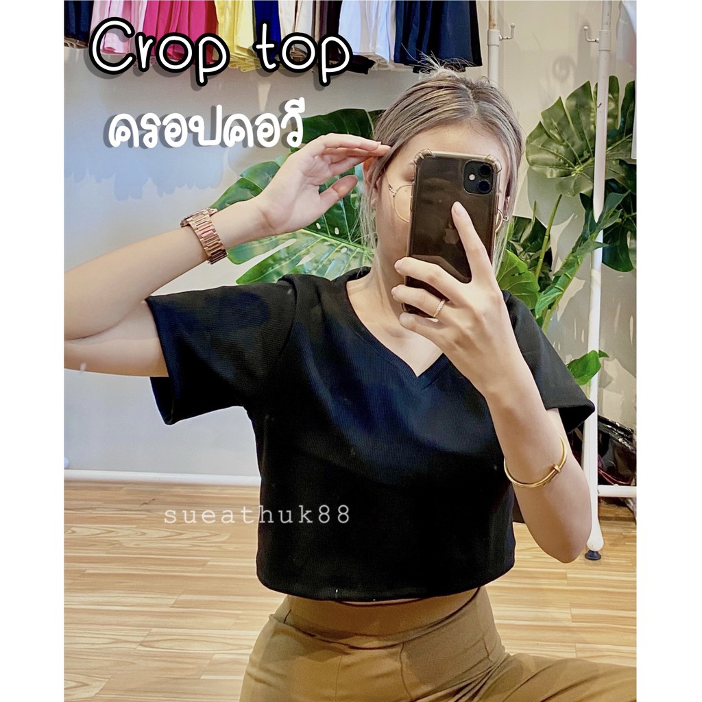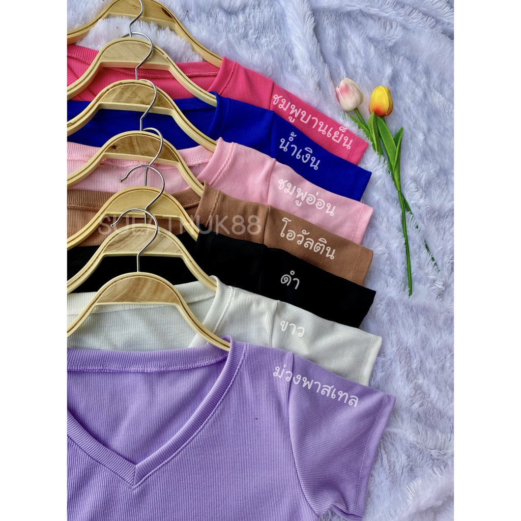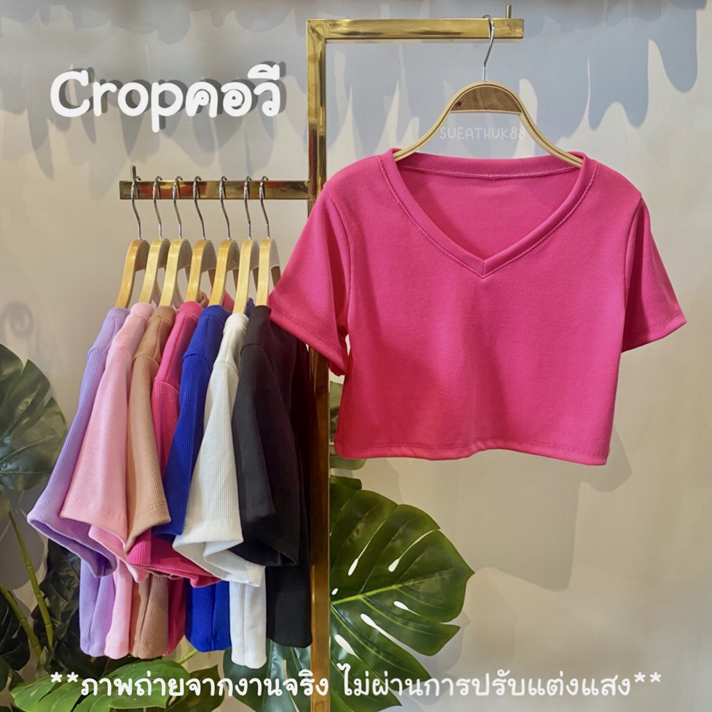 🍭 𝑪𝒓𝒐𝒑 𝒕𝒐𝒑 เสื้อครอปคอวี 🍭 so cute ผ้าร่องหนานุ่ม เกรดAพรีเมียม