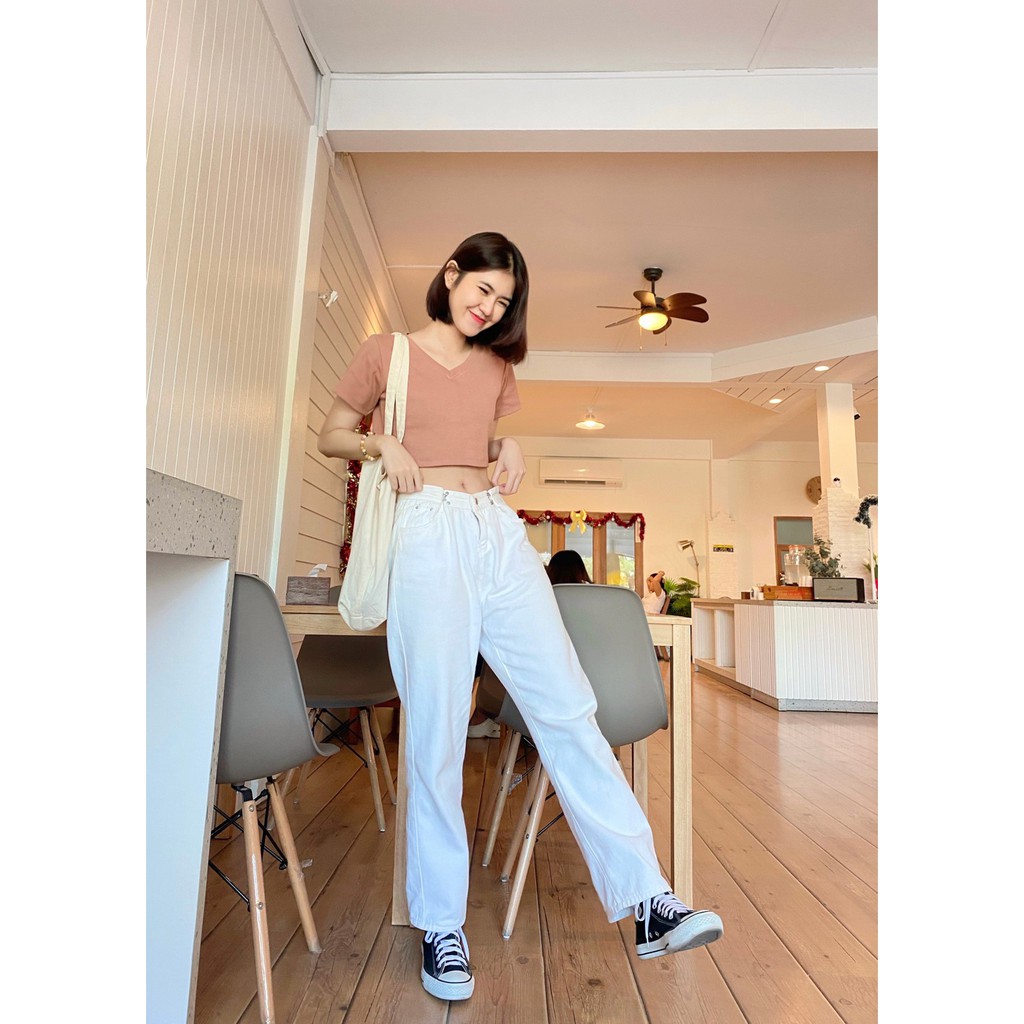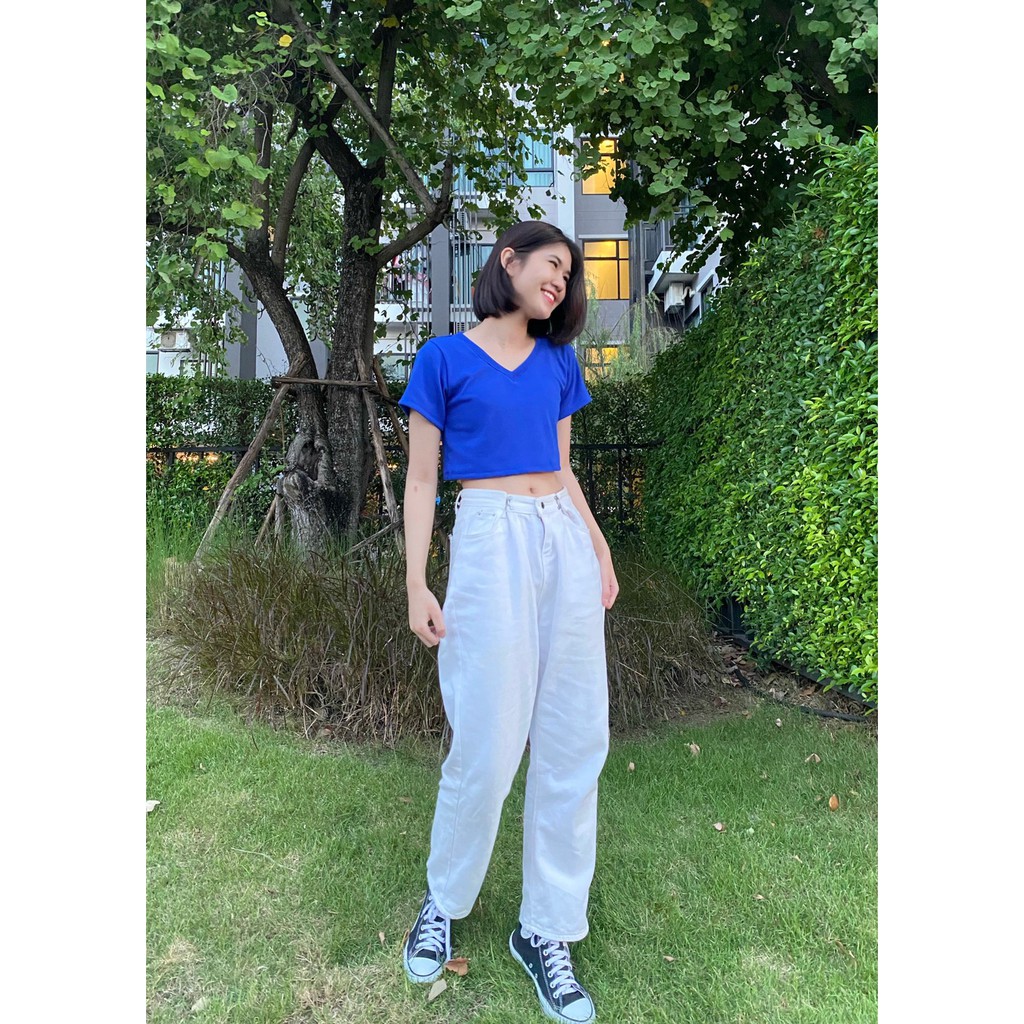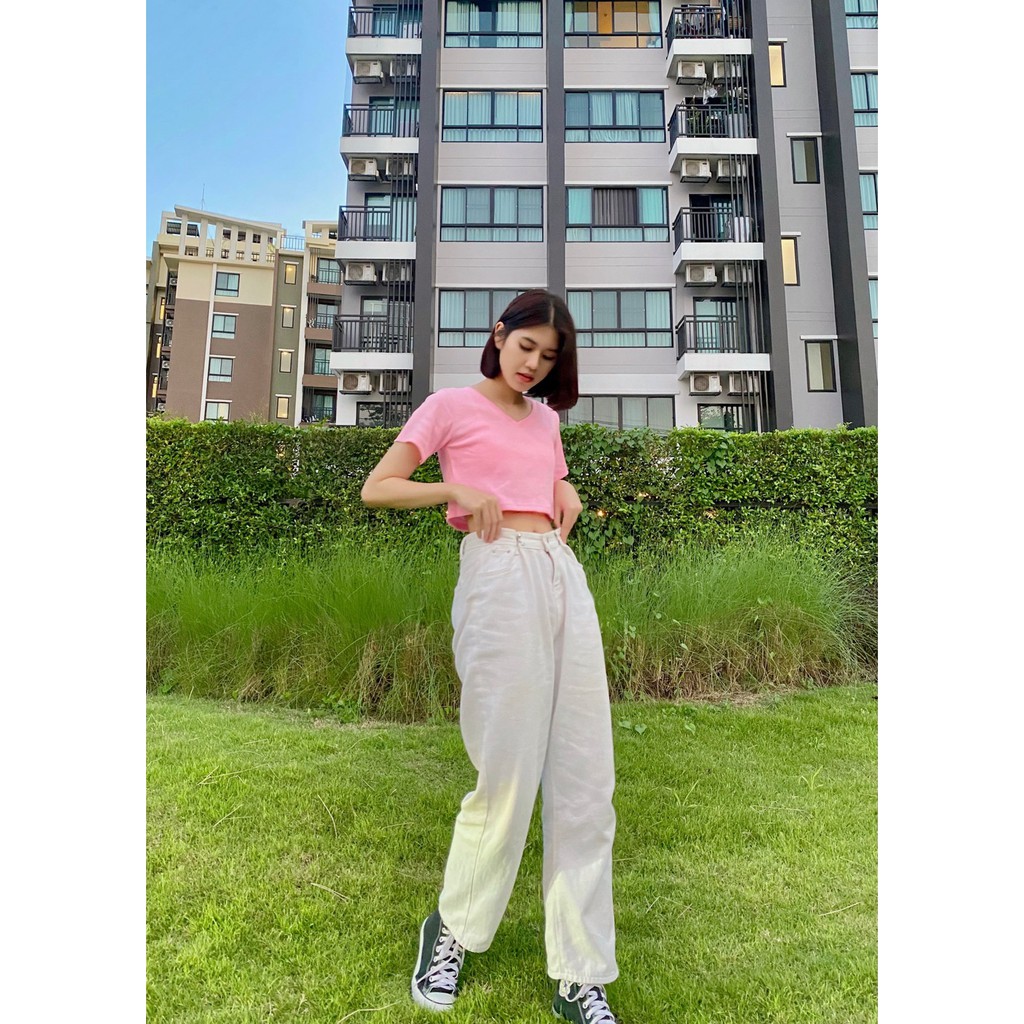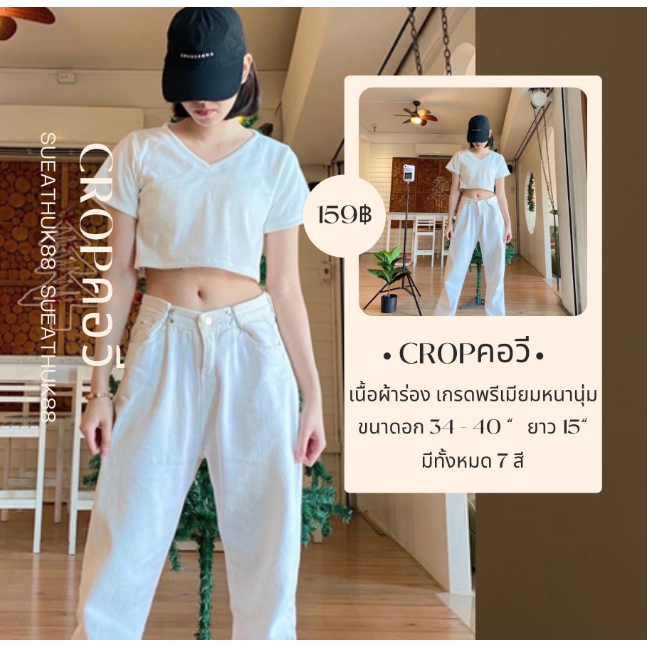 🍭 𝑪𝒓𝒐𝒑 𝒕𝒐𝒑 เสื้อครอปคอวี 🍭 so cute ผ้าร่องหนานุ่ม เกรดAพรีเมียม