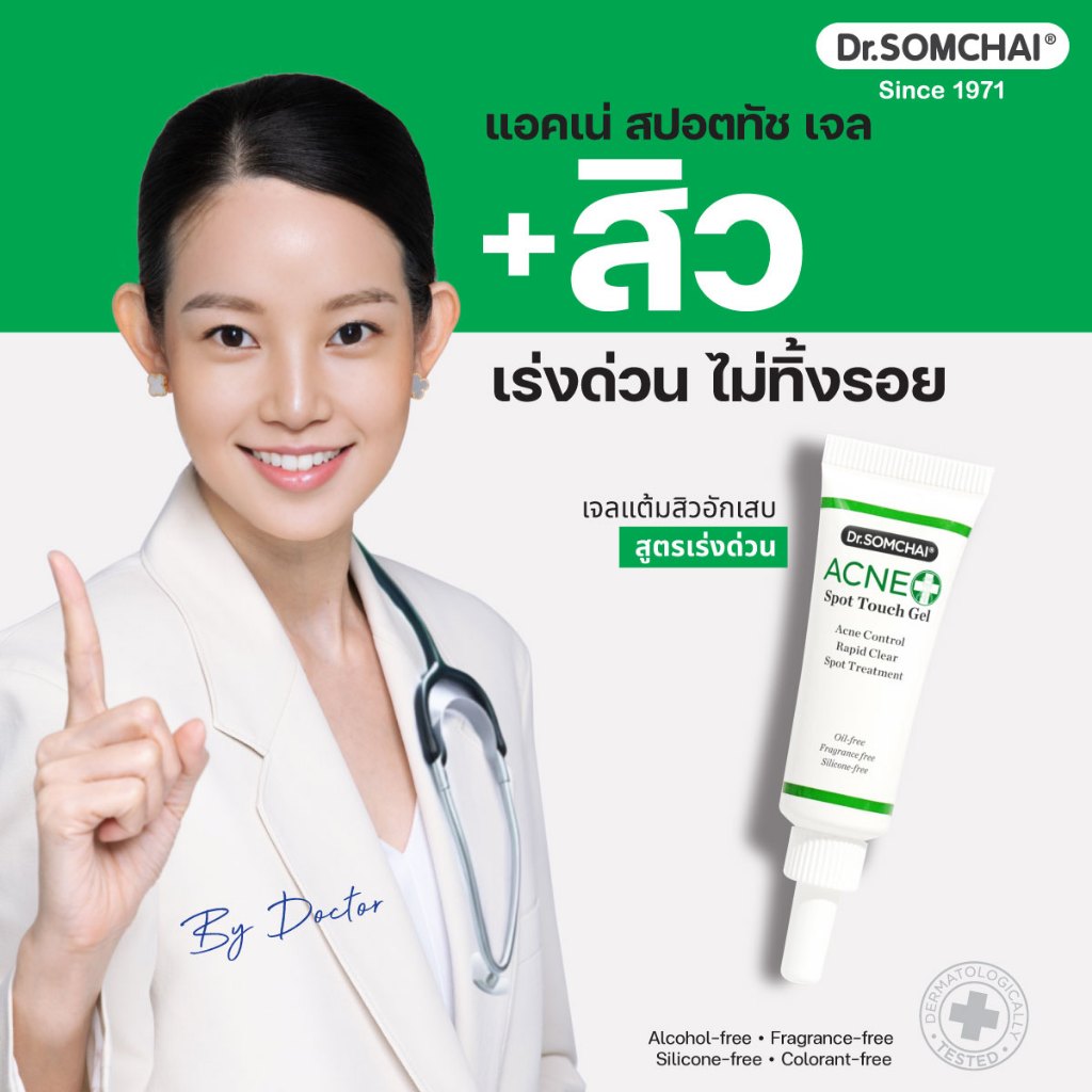 Dr.Somchai acne spot touch gel 4 g.เจลแต้มสิว อักเสบ สูตรเร่งด่วน สิวแห้ง ยุบเร็ว