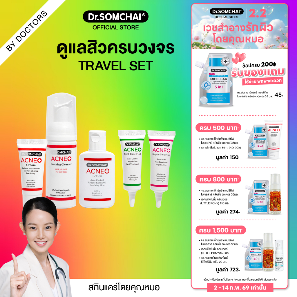 Dr.Somchai Acne Travel Set ดร.สมชาย ชุดเริ่มต้นจัดการสิว และดูแลผิวหน้า 4 ขั้นตอน 5 ชิ้น