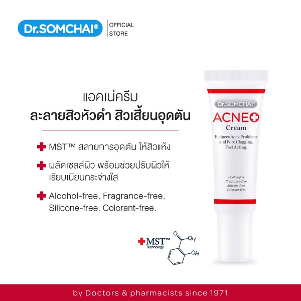 Dr.Somchai Acne Cream 15 g.ครีมสลายสิวอุดตัน ละลายสิวหัวดำ สิวเสี้ยน