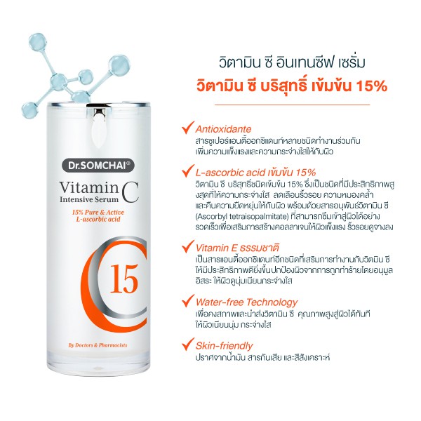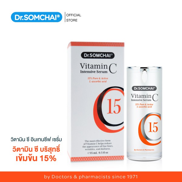 Dr.Somchai Vitamin C Intensive Serum 15 ml. เซรั่มวิตามินซีเข้มข้น 15% (บำรุงผิวหน้า, ผิวหมองคล้ำ, มีริ้วรอย)