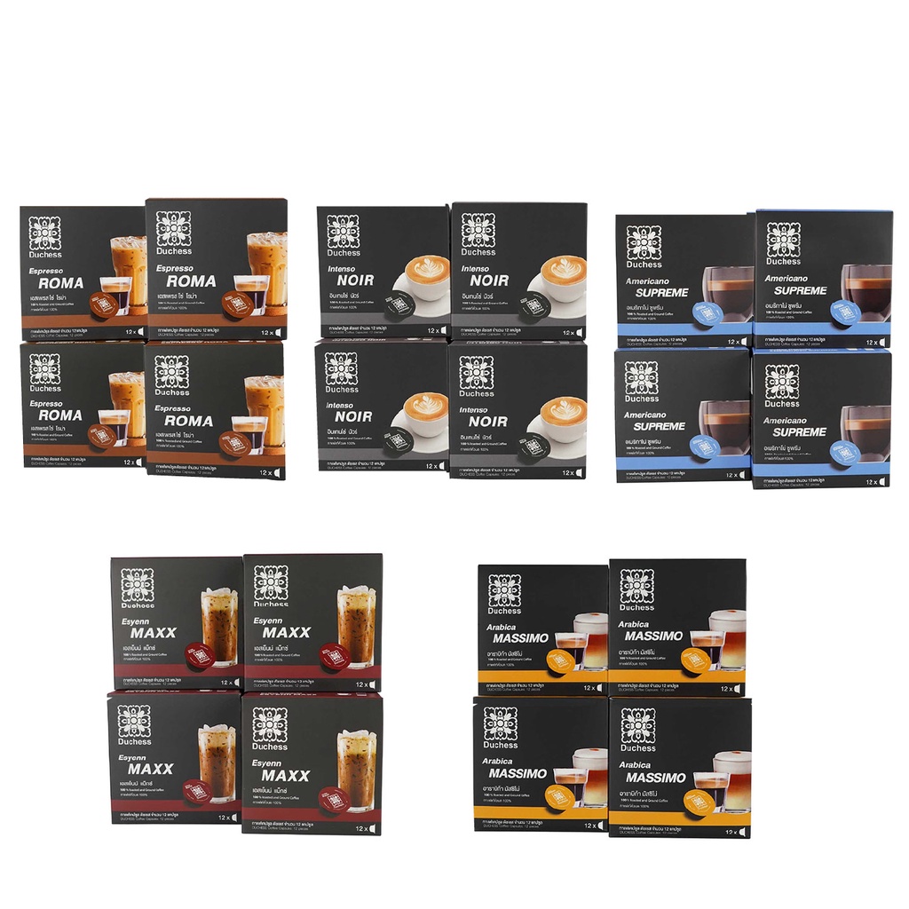 Duchess กาแฟแคปซูล ใช้ได้กับเครื่องระบบ Dolce gusto เท่านั้น 4 กล่อง 48 แคปซูล มี 5 รสชาติ