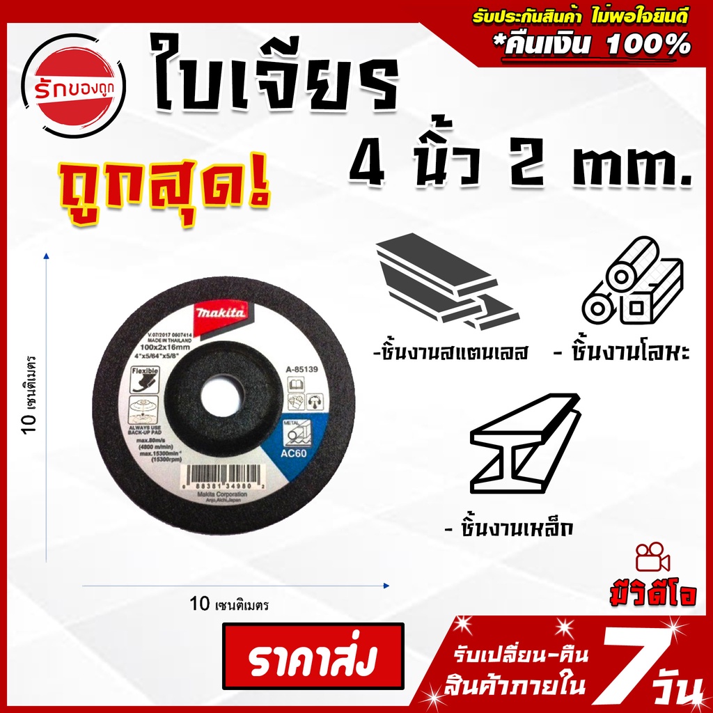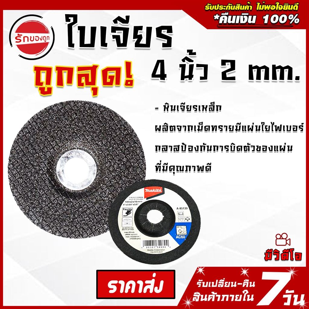 ใบเจียร หินเจียร ใบขัด 4นิ้ว บาง 2mm ยกกล่อง 5ใบ ของแท้ราคาถูกอย่างดี เจียร ขัดเหล็ก เครื่องมือช่าง