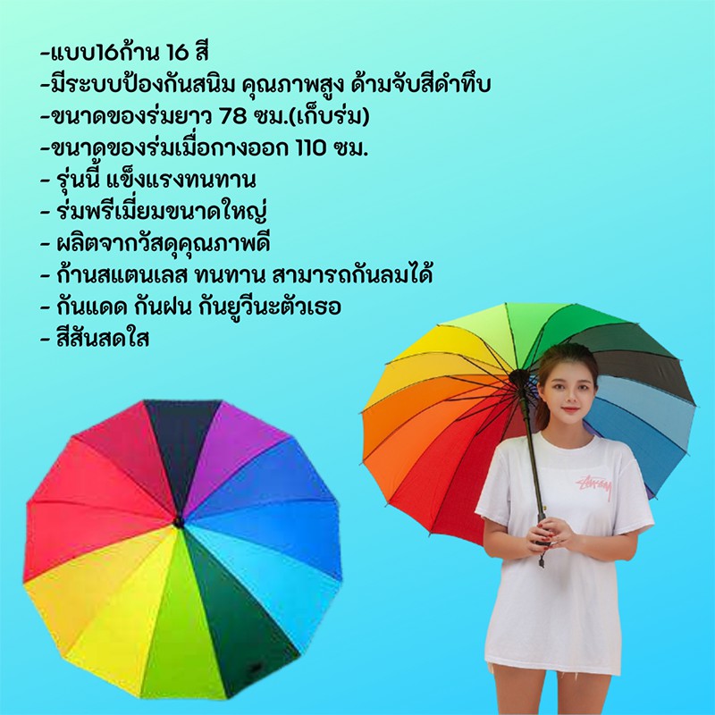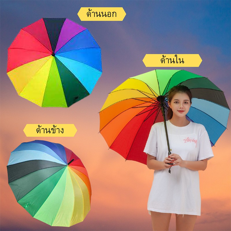 (ใส่โค้ดMTCHECK99ลด20%)ร่มขนาดใหญ่สีรุ้ง กันแดด กันฝน กันแสง รุ่น16ก้าน 16สี สีสันสดใส วัสดุแข็งแรง ด้ามจับทนทานพอดีมือ