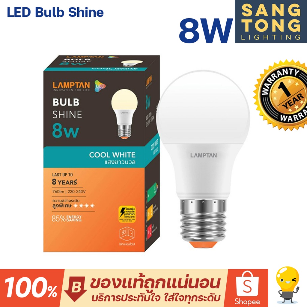 Lamptan หลอดไฟ led คูลไวท์ ขาวนวล 8w 13w 4000k ขาวกึ่งเหลือง รุ่น Shine Coolwhite