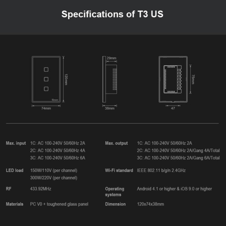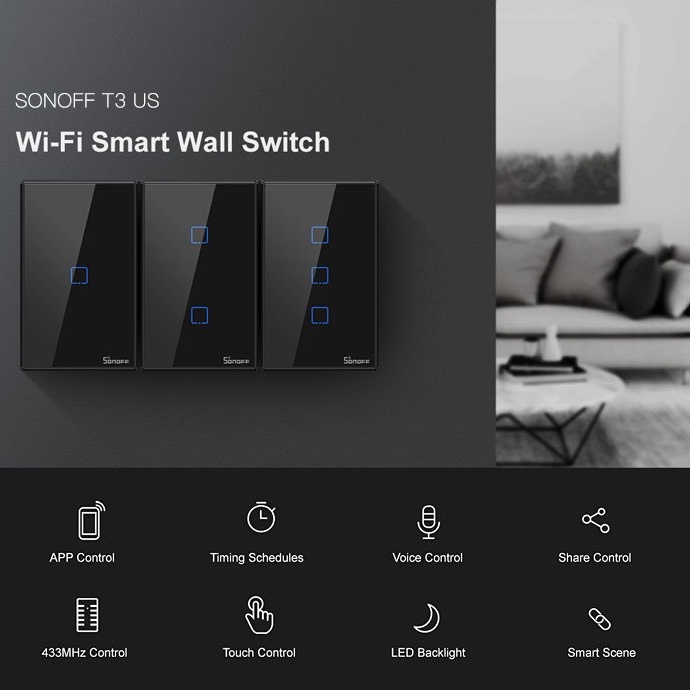 Sonoff Smart Home Tx T3 Us 1 / 2 / 3 แผงสวิตช์ไฟอัจฉริยะแบบสัมผัสรองรับ Alexa Google Home Nest