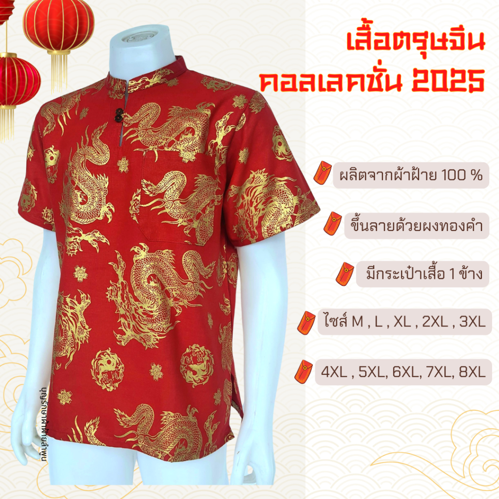 เสื้อตรุษจีนชาย เสื้อตรุษจีน ลายมังกรทอง มีให้เลือกมากถึง 11 ไซส์