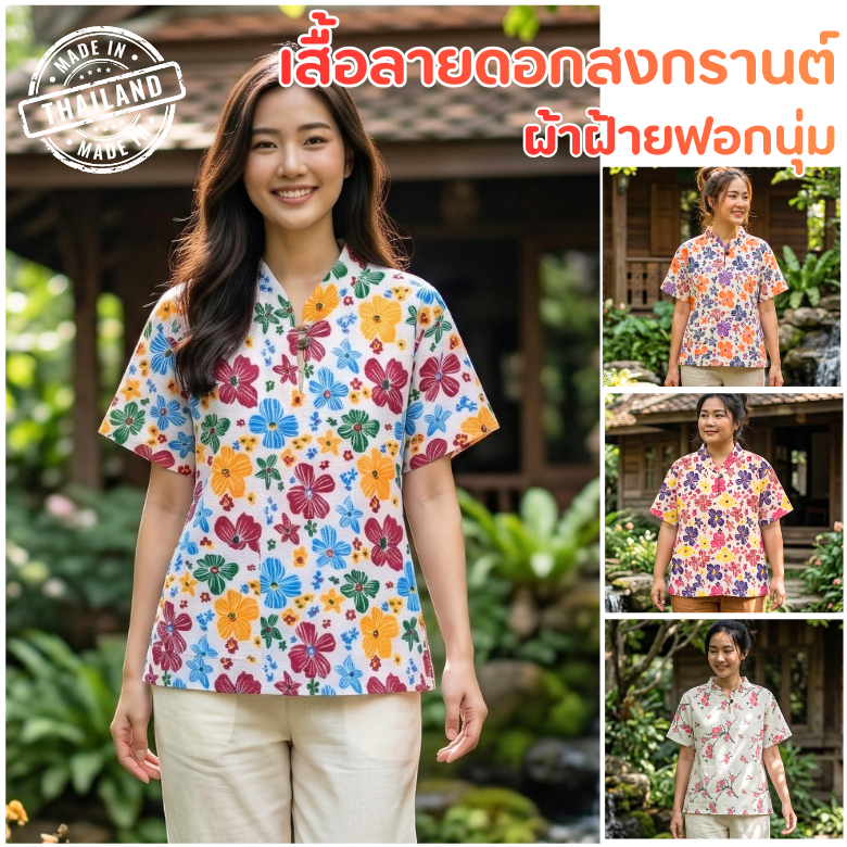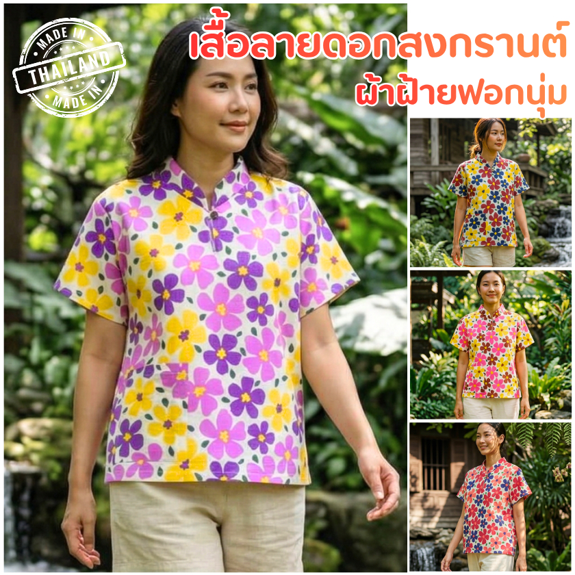 เสื้อผ้าฝ้ายฟอกนุ่มหญิง 📢 คอลเลคชั่นลายดอกไม้ ลายสงกรานต์ ลายตรุษจีน