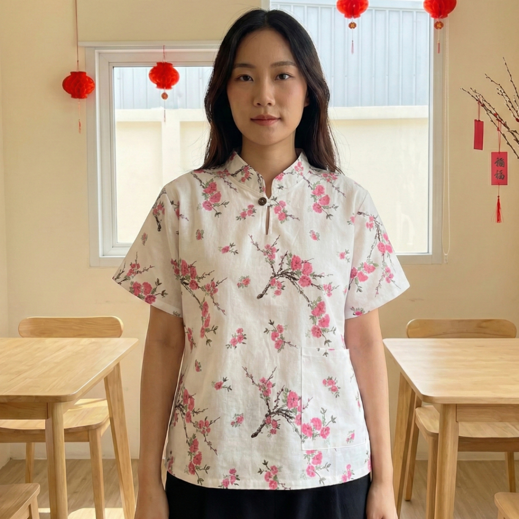 เสื้อคอจีน ผู้หญิง เสื้อผ้าฝ้ายแท้ ฟอกนุ่ม เสื้อผู้หญิงสีดำ ใส่ทำงานได้ ใส่สบาย ไม่ร้อน