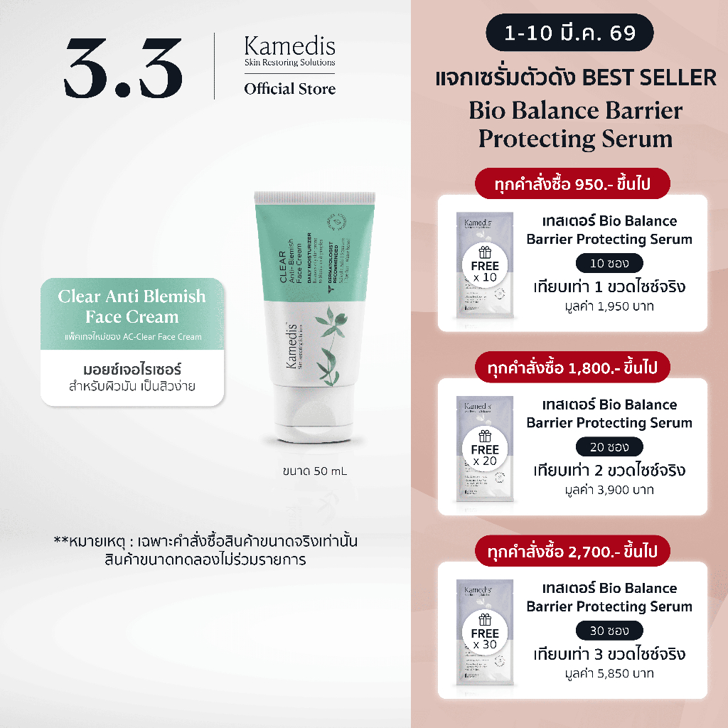 [ B ] Kamedis AC-Clear Face Cream 50ml มอยเจอไรเซอร์ครีมสำหรับผิวมัน เป็นสิวง่าย