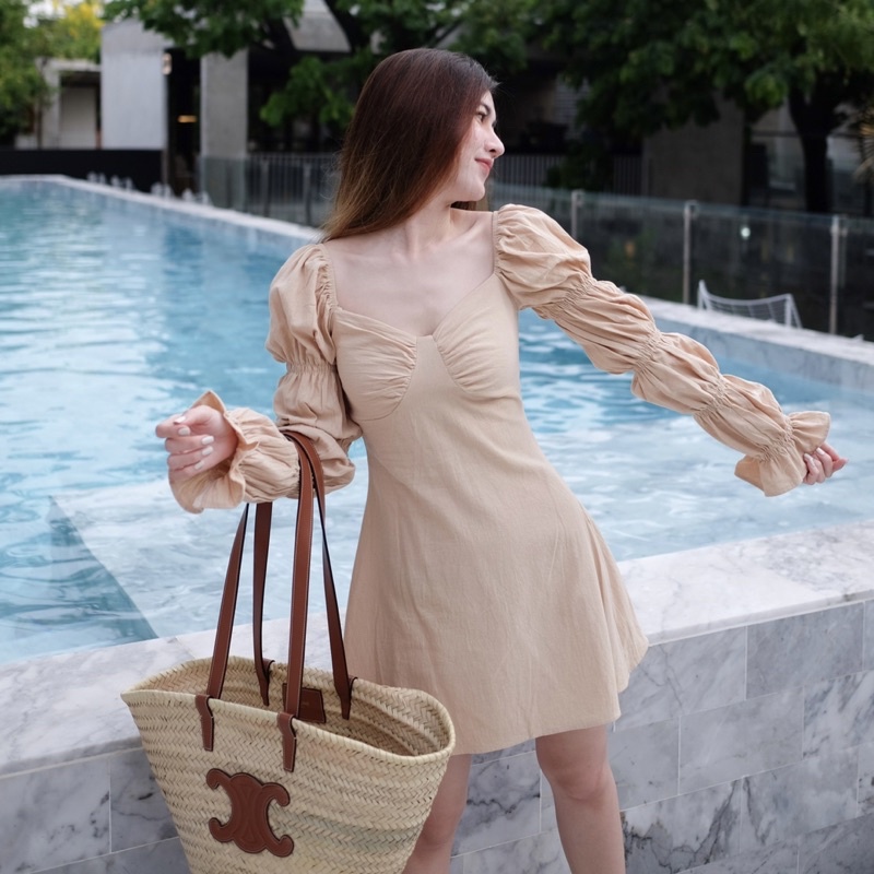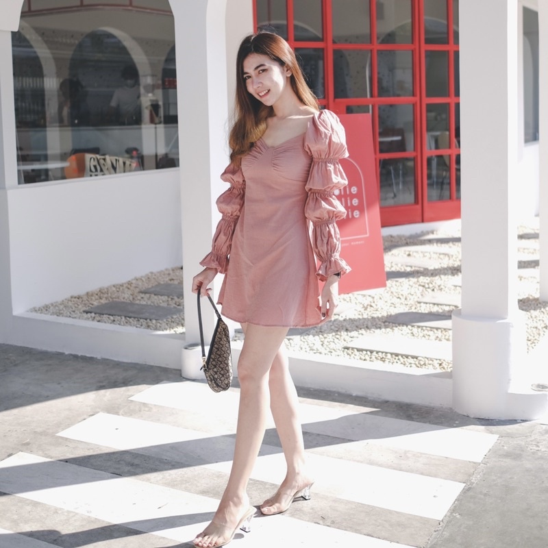 เดรสแขนยาว ท่อนแขนเลเยอร์พอง เรเยอ4ชั้น ช่วงอกดีเทลปัก ด้านหลังสม็อค โชว์แผ่นหลังนิดดด ไปค่าเฟ่ก้อชิค ไปทะเลริมหาดก็ชิวๆ