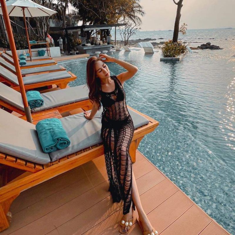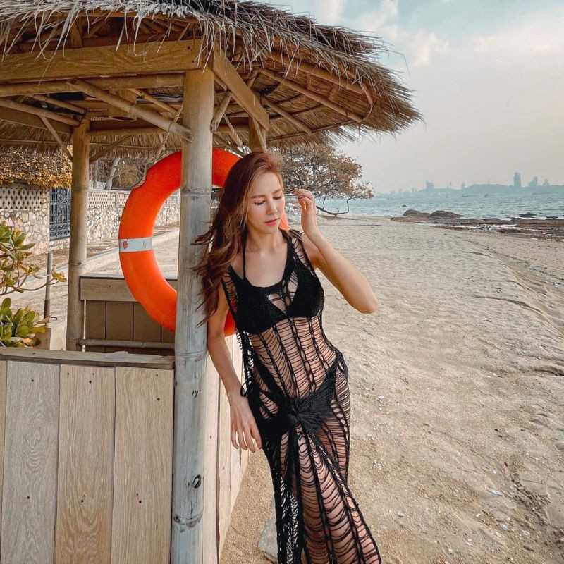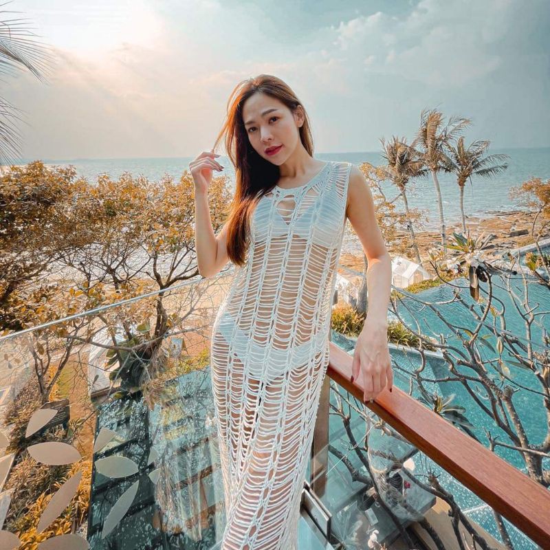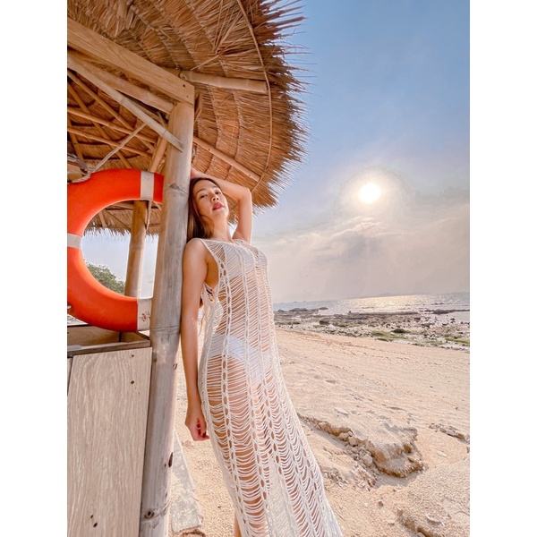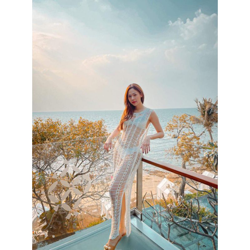 HOCD14 beach dress ชุดคลุมบิกินี่ ชุดตาข่าย เดรสตาข่าย ชุดถักไปทะเล