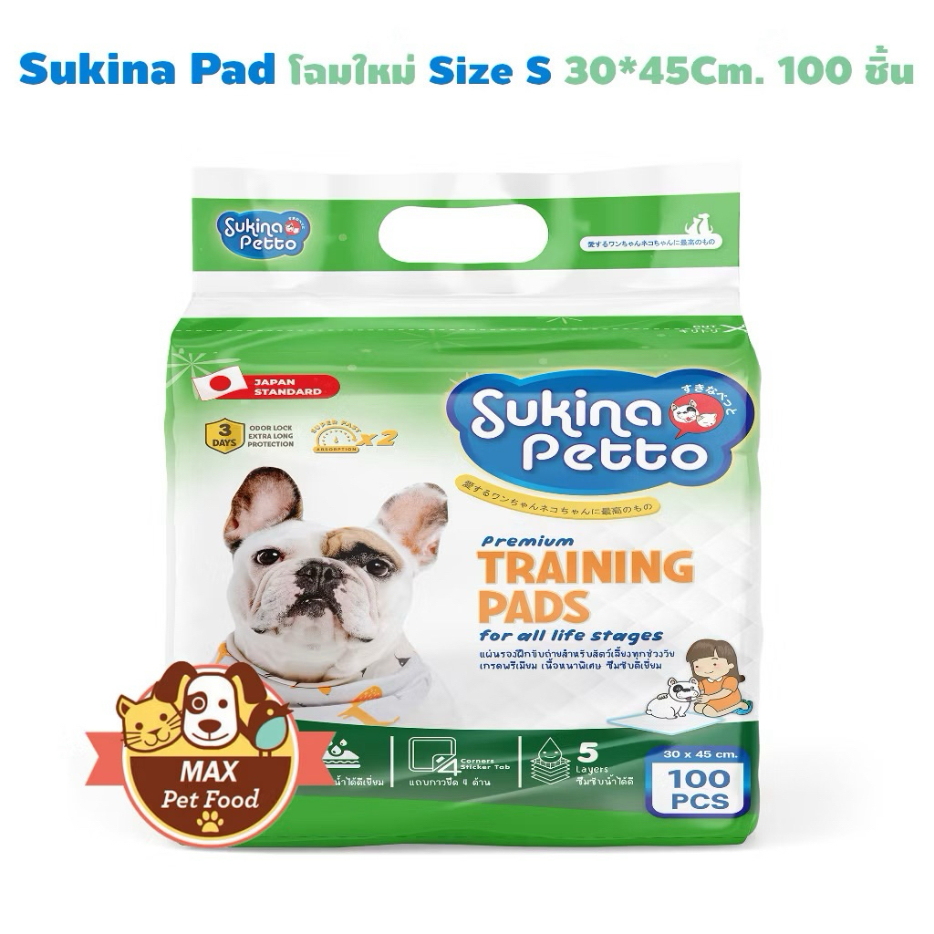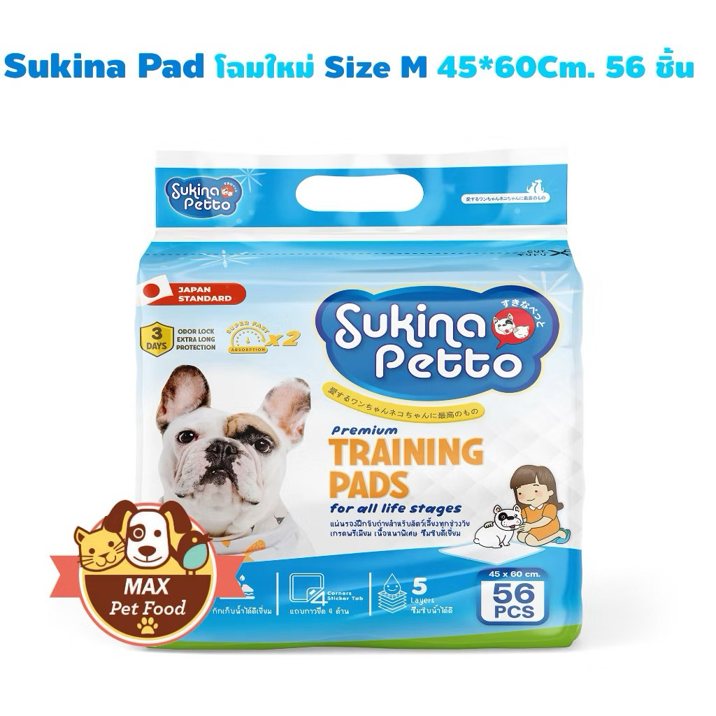 Sukina Petto Training Pad for Dog แผ่นรองซับอย่างหนา เลือกขนาดด้านใน ราคาต่อ 1 แพค