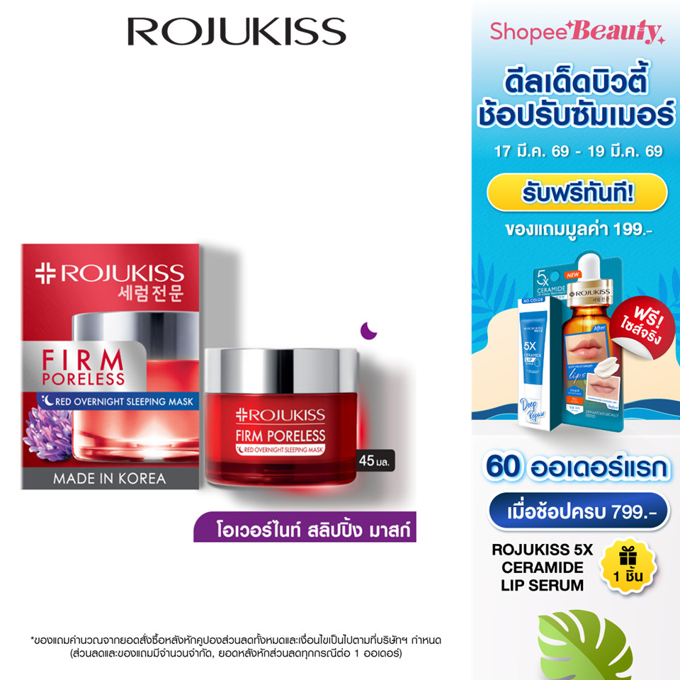 โรจูคิส เฟิร์ม พอร์เลส เรด โอเวอร์ไนท์ สลีปปิ้ง มาส์ก 45 มล. Rojukiss Firm Poreless Red โอเวอร์ไนท์ สลีปปิ้ง มาส์ก 45ml