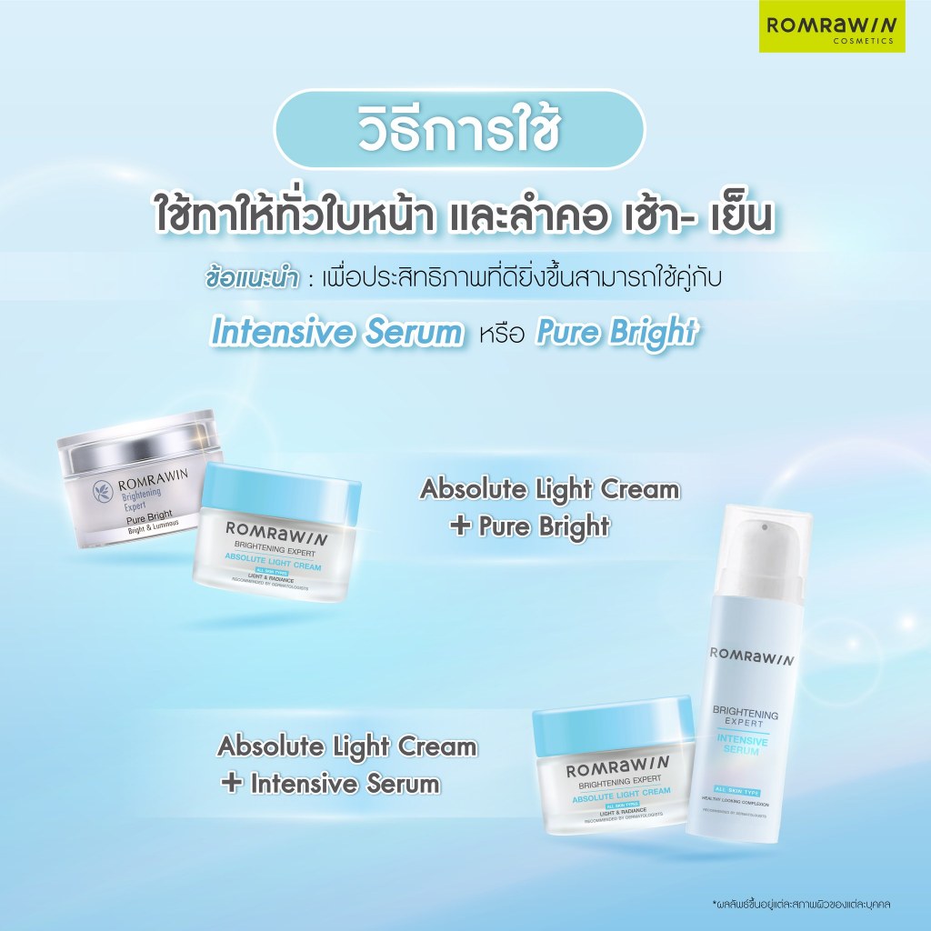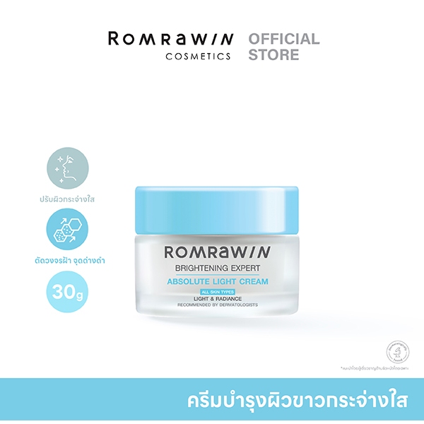 Romrawin Absolute Light Cream 30 g. ครีมบำรุงผิวหน้า จุดด่างดำแลดูจางลง มอยส์เจอร์ไรเซอร์ 30 กรัม