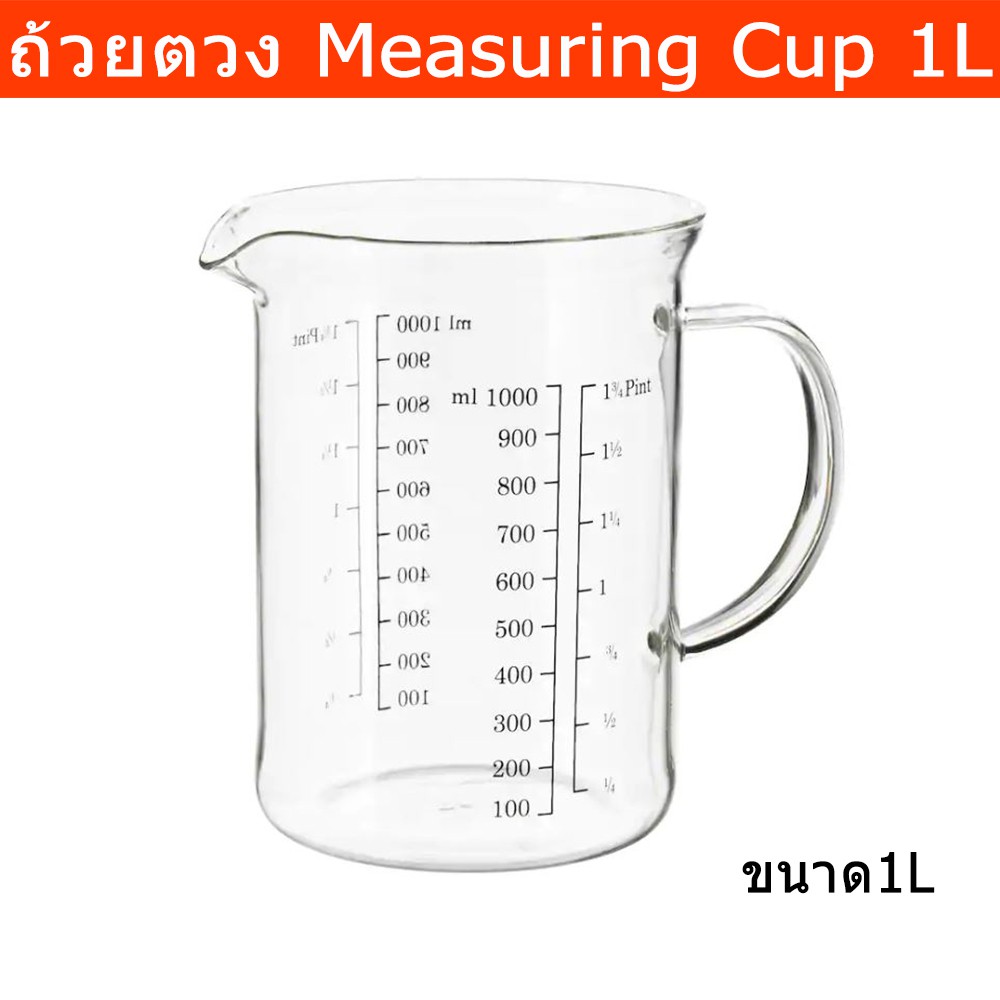 ถ้วยตวง แก้วตวง เหยือกตวง แบบแก้ว ขนาด 1ลิตร (1ถ้วย) Mesuring Cup Measuring Jug - Glass Volume 1L. (1 unit)
