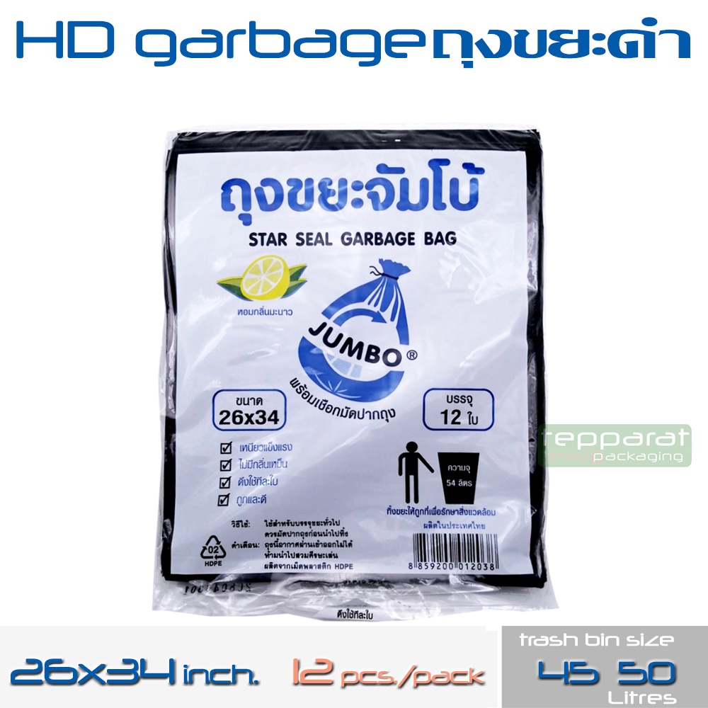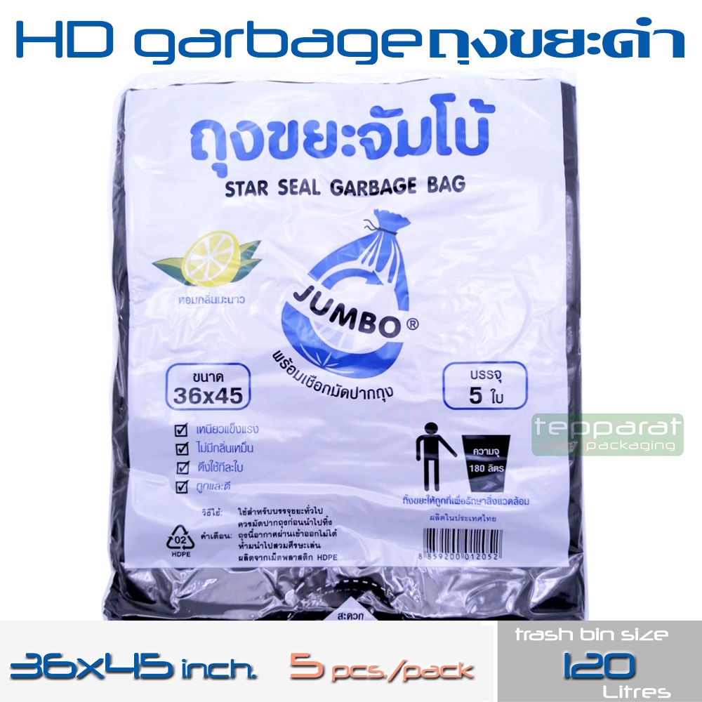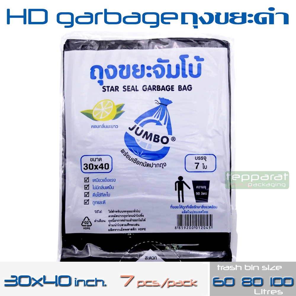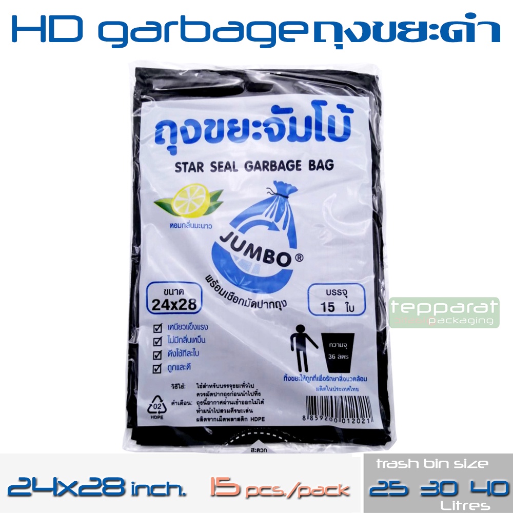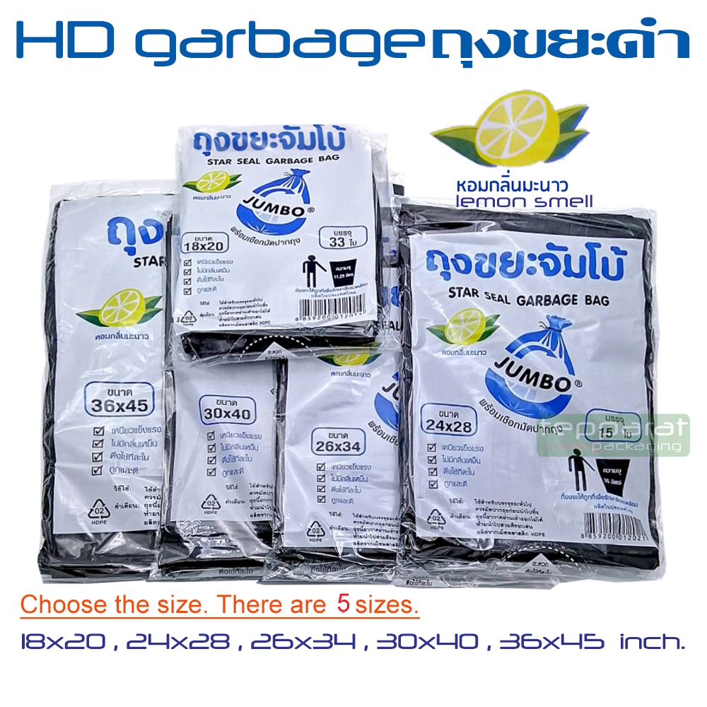 [ขายส่ง] ถุงขยะดำ HDPE garbage bag เกรด A บางเหนียว พร้อมเชือกมัดปากถุง ตราจัมโบ้ ไม่มีกลิ่นเหม็นฉุน