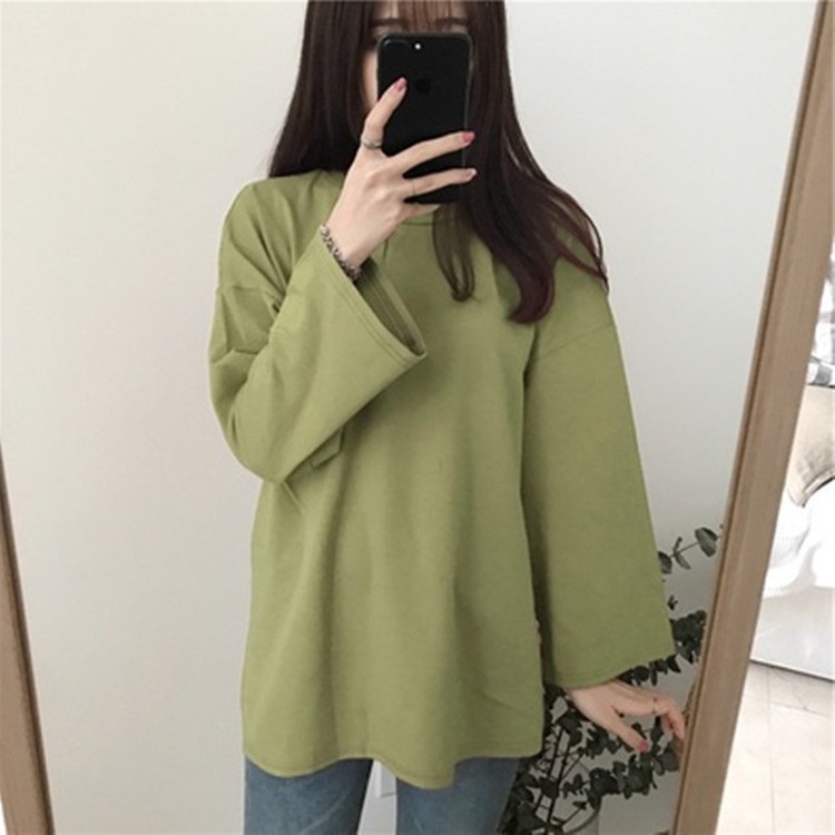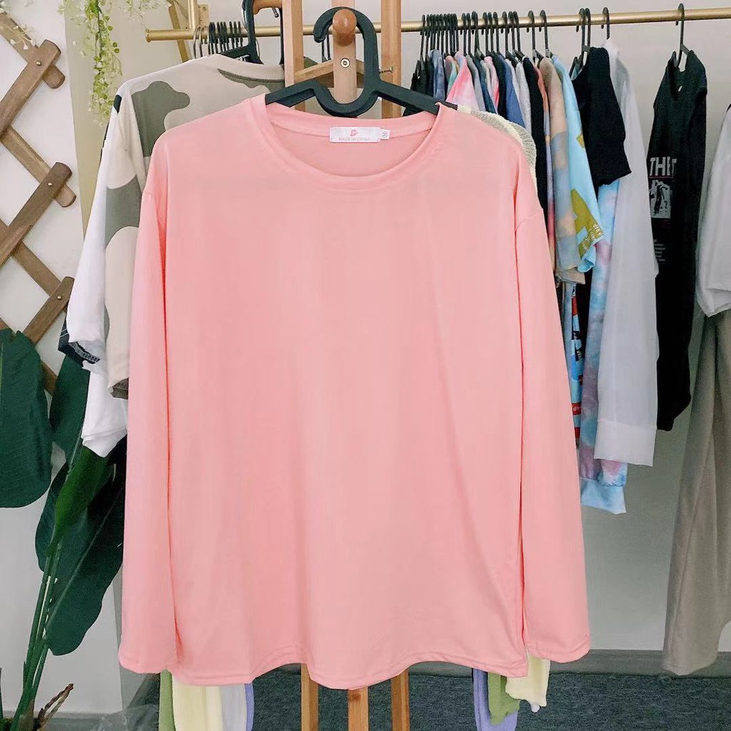 MIMI&DIDI เสื้อยืดแขนยาวผู้หญิง คอกลม สีพื้น oversize หลวมๆ ทรงปล่อยตรงผ้าคอตตอน(358/2370)