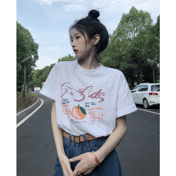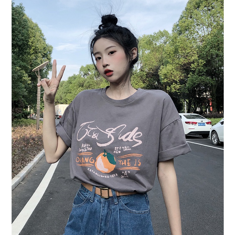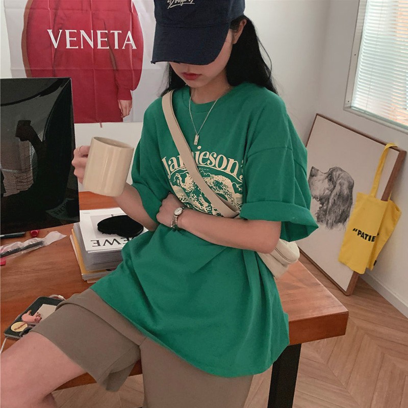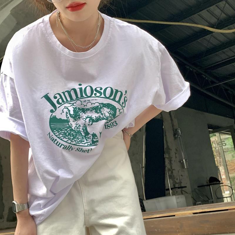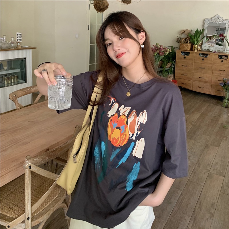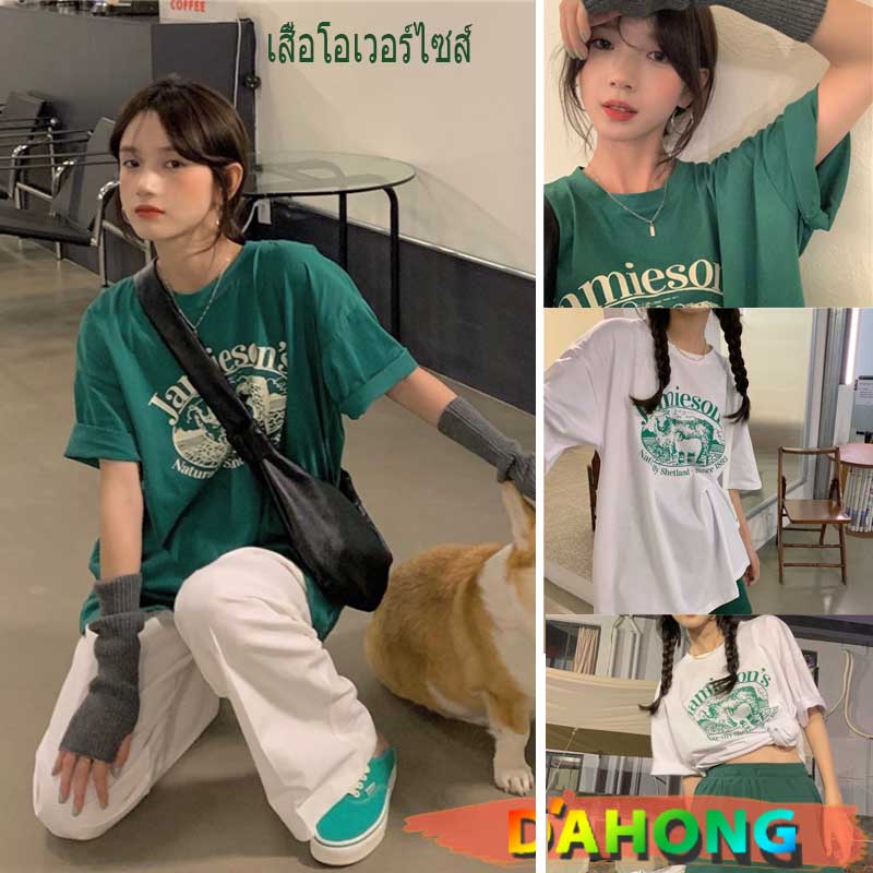 Dahong 💖เสื้อยืดแขนสั้นพิมพ์ลาย เกาหลี เสื้อโอเวอร์ไซส์ oversize เสื้อยืดผู้หญิงน่ารักๆ ลื่นๆ นุ่มๆ ผ้าเด้ง XXL 2272