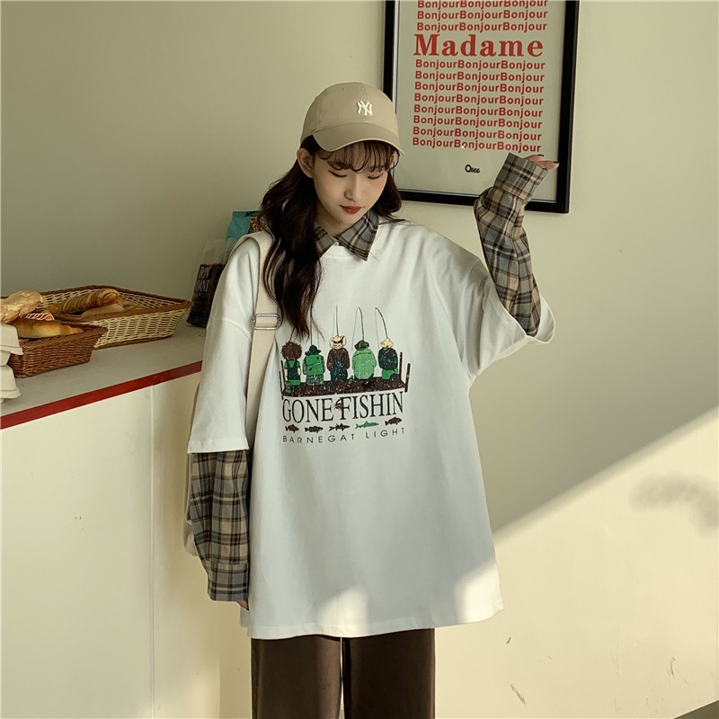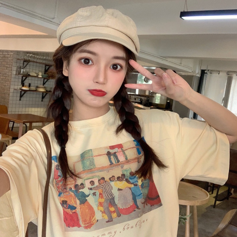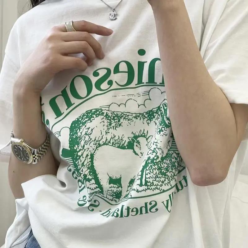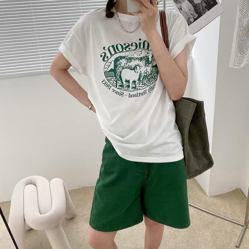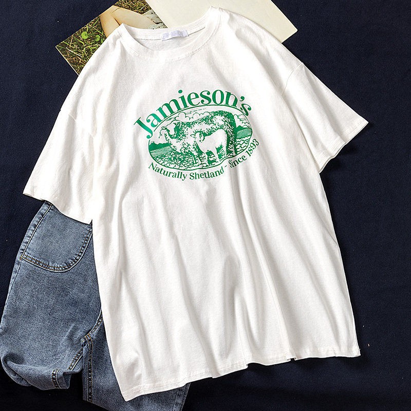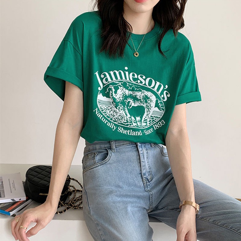 Dahong 💖เสื้อยืดแขนสั้นพิมพ์ลาย เกาหลี เสื้อโอเวอร์ไซส์ oversize เสื้อยืดผู้หญิงน่ารักๆ ลื่นๆ นุ่มๆ ผ้าเด้ง XXL 2272