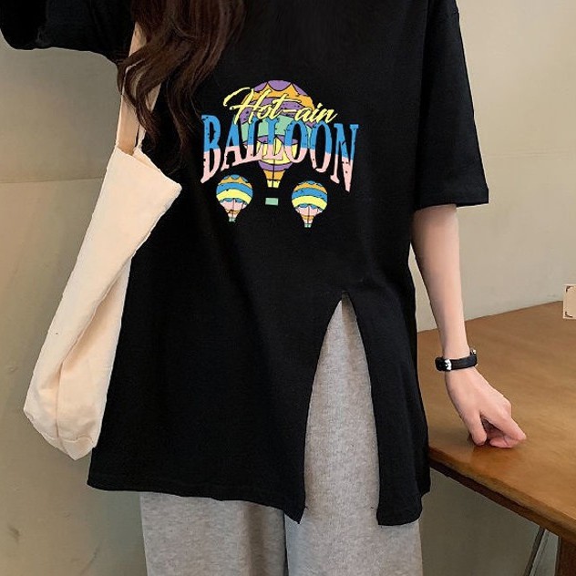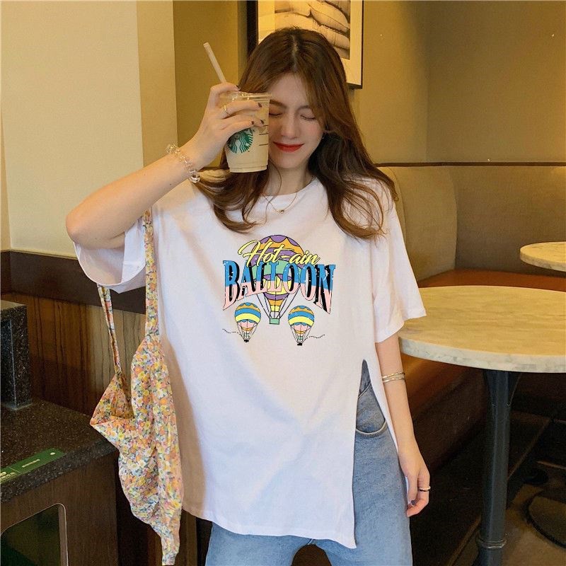 Dahong 💖 2254/2253 เสื้อผ้าสาวอวบ เสื้อยืดผ่าข้าง oversize คอกลม
