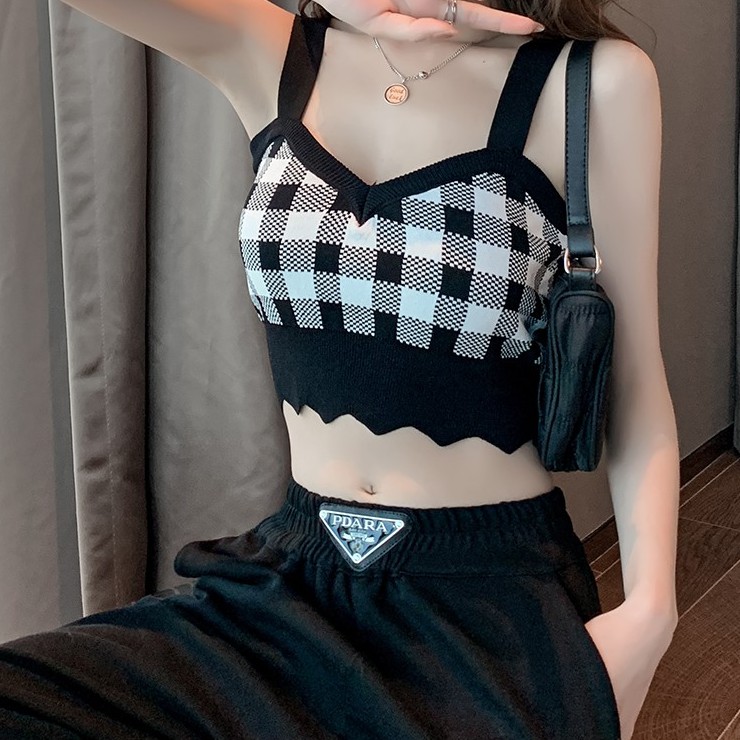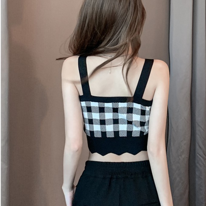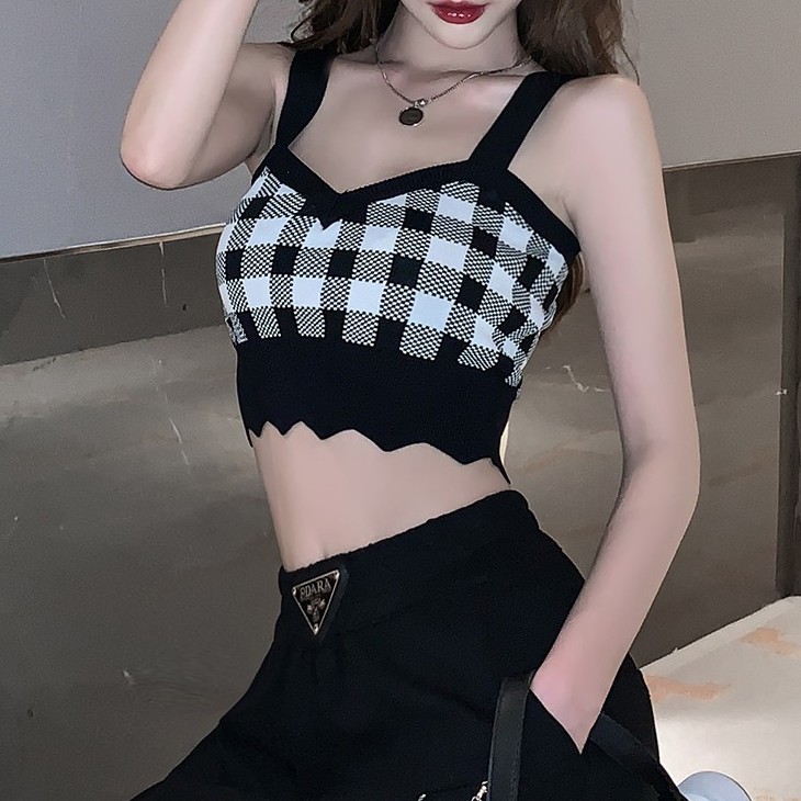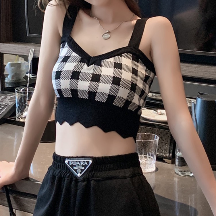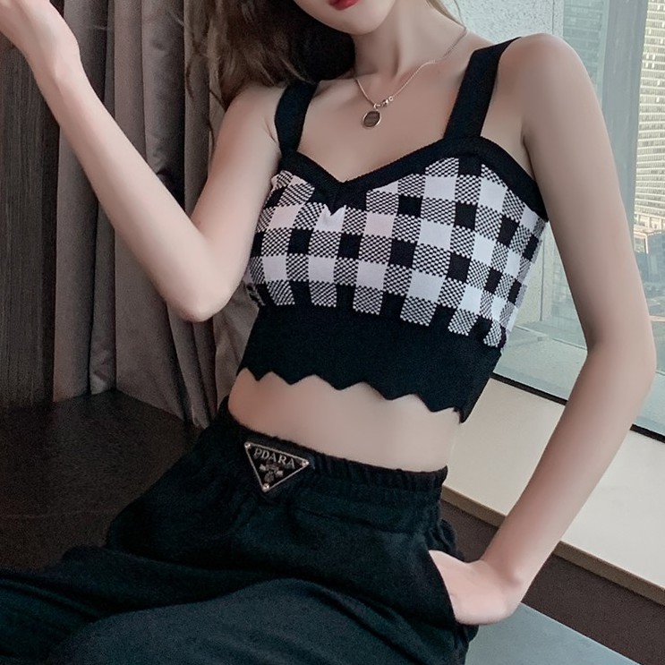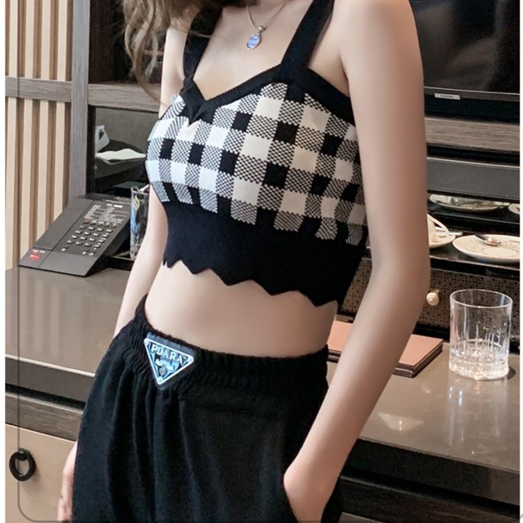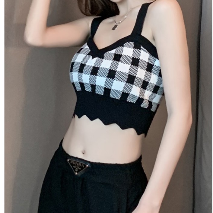 Dahong 💖 เสื้อครอป เสื้อสายเดี่ยว ลายสก็อต แต่ลายเซ็กซี่ 25021