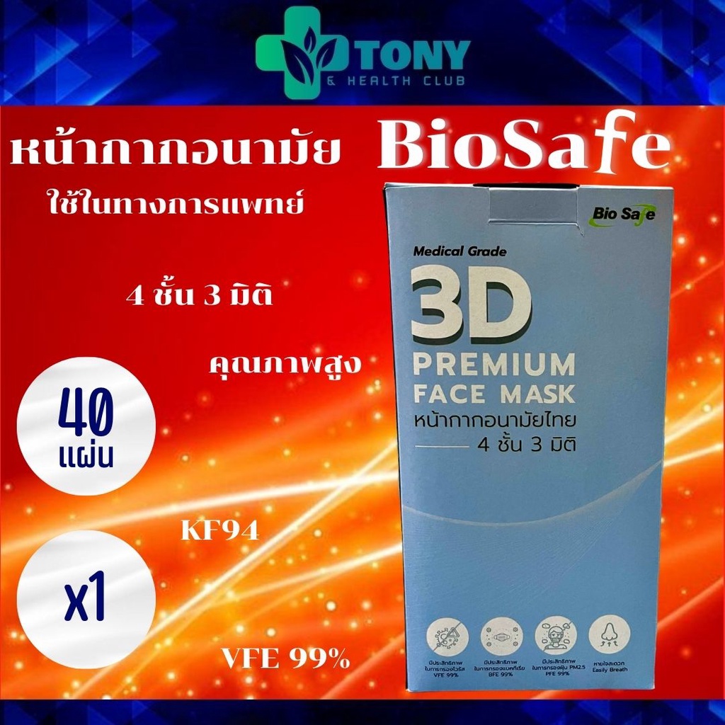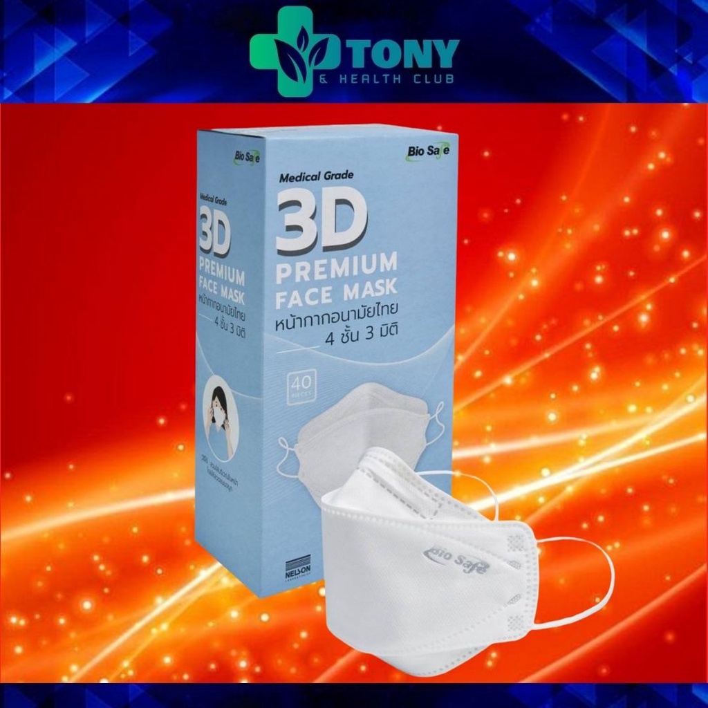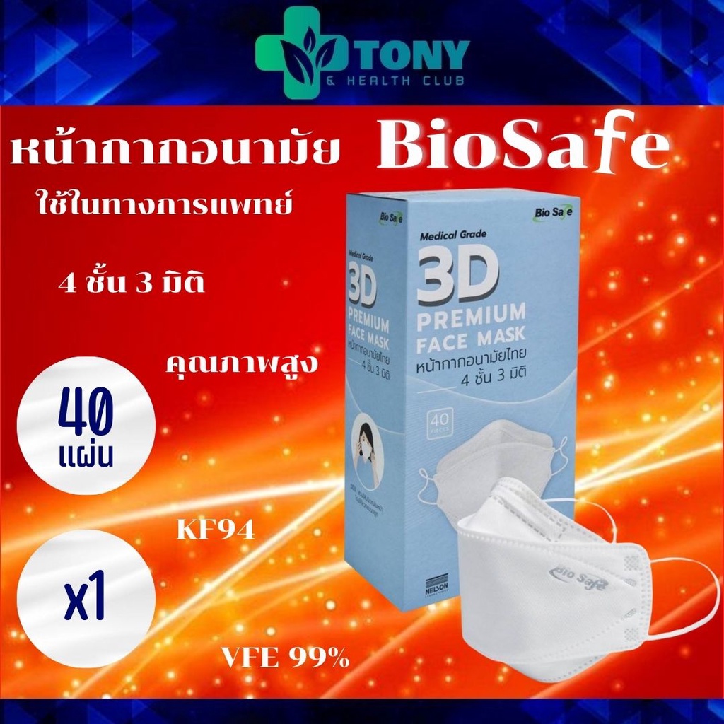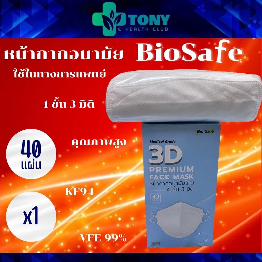 แมส หน้ากากอนามัย ไบโอเซฟ สีขาว Bio Safe 3D Face Mask Medical Grade (White) หน้ากากอนามัยไทย 4 ชั้น 3 มิติ KF94 1กล่อง