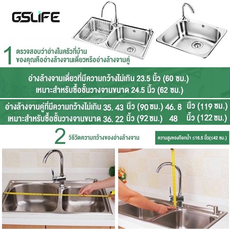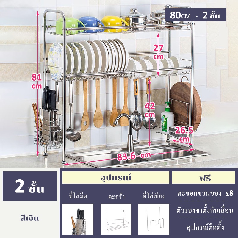 GSlife ชั้นวางจาน สแตนเลส ที่คว่ำจานชาม 2/1ชั้น 60/80/90/100ซม ชั้นวางของในครัว