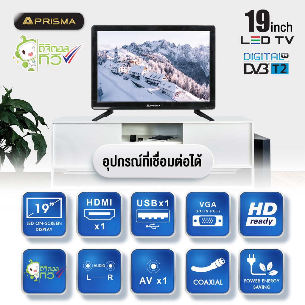 PRISMA DIGITAL TV รุ่น DLE-1903DT W ขนาด 19 นิ้ว TV Monitor Computer,CCTV