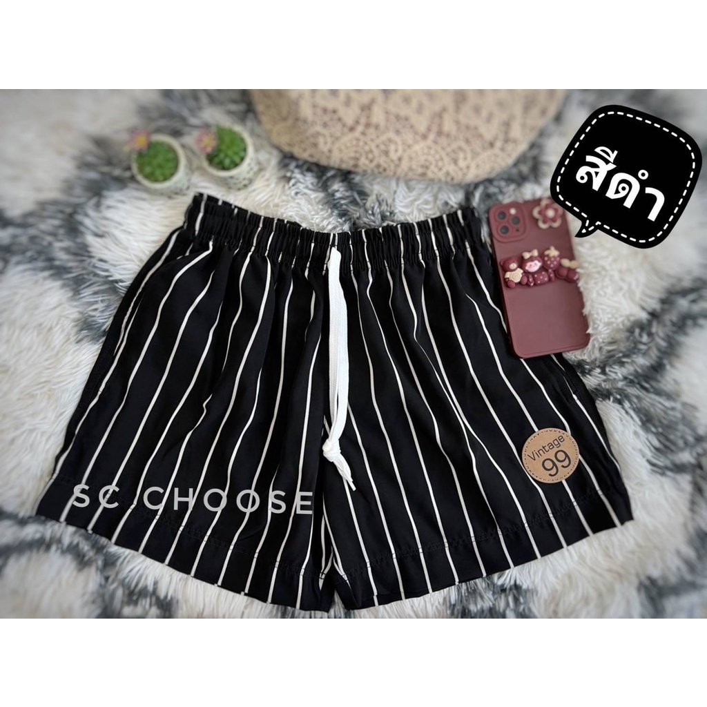 Vintage 99 กางเกงขาสั้น ใส่สบาย เอว 20-38" ผ้าไหมอิตาลี สีไม่ตก ฟรีไซส์ ริ้วเล็ก มี 7สี