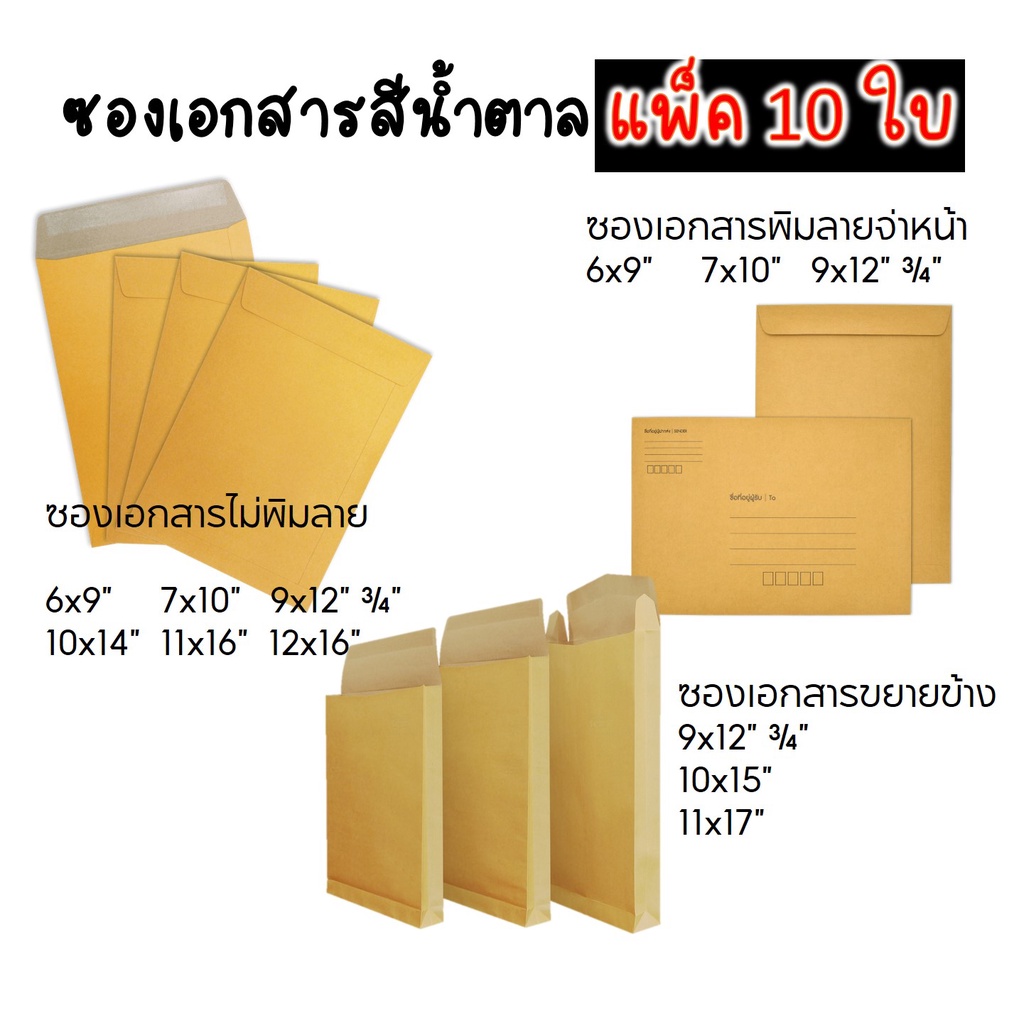 B-BOX ซองเอกสาร ซองน้ำตาล ซองเอกสารจ่าหน้า/ไม่จ่าหน้า ซองเอกสารขยายข้าง (แพ็ก 10ใบ)