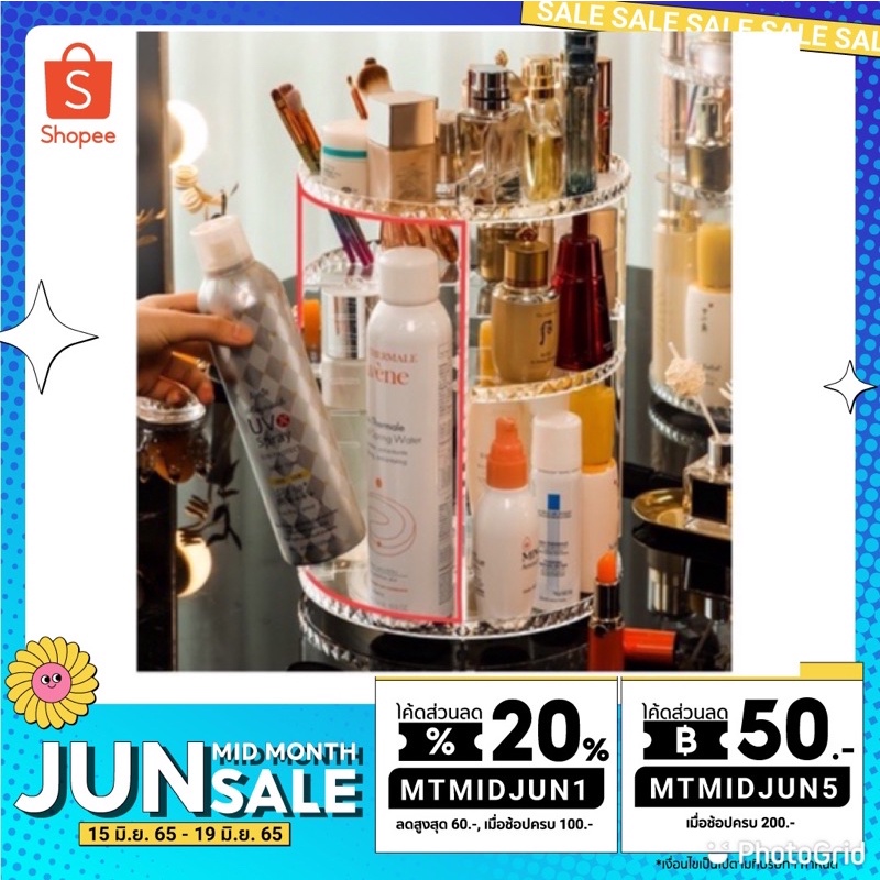 🥝 ใส่โค้ด MTCHECK99ลด 20%🍉Shop ชั้นวางเครื่องสำอาง กล่องวางเครื่องสำอาง หมุนได้ 360°-1017 ช่องหลายขนาด (17ช่อง)
